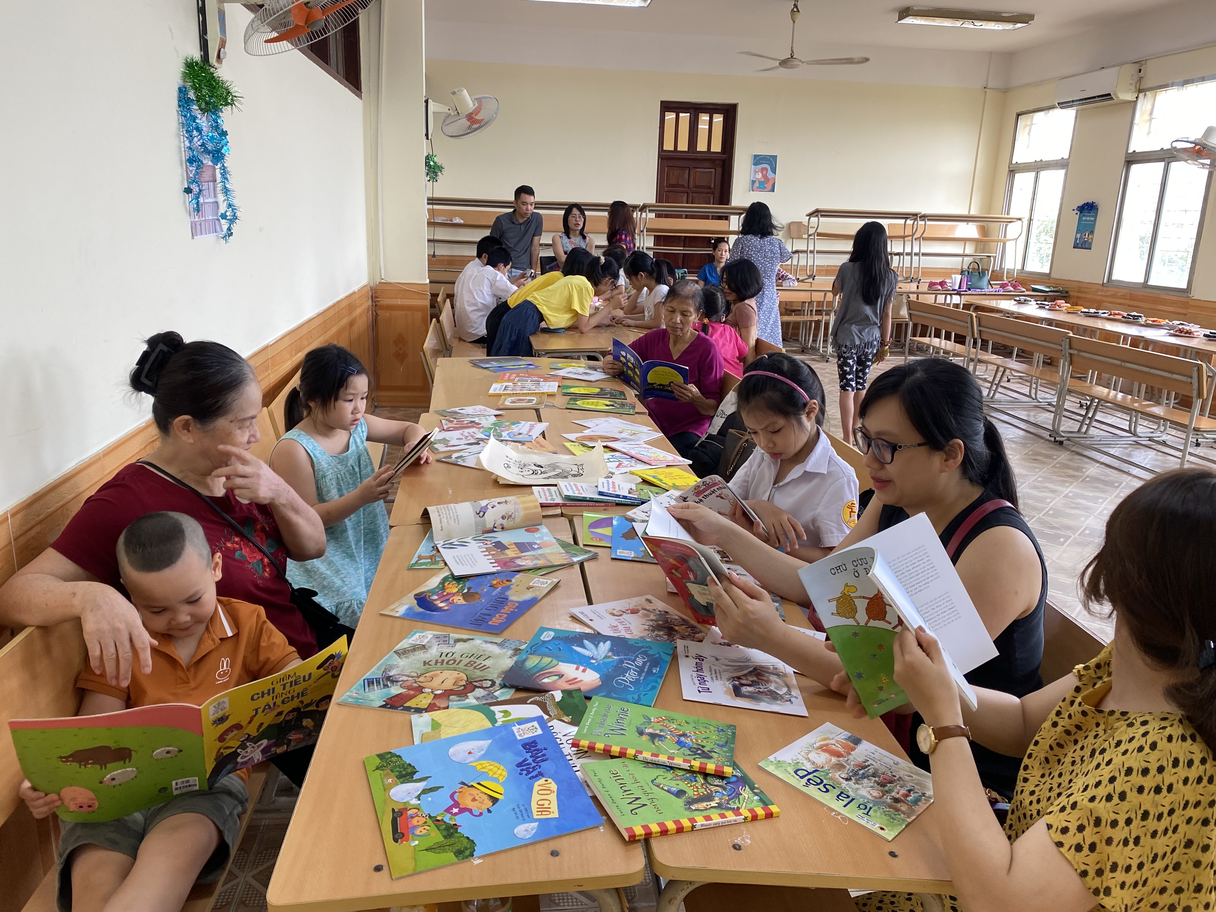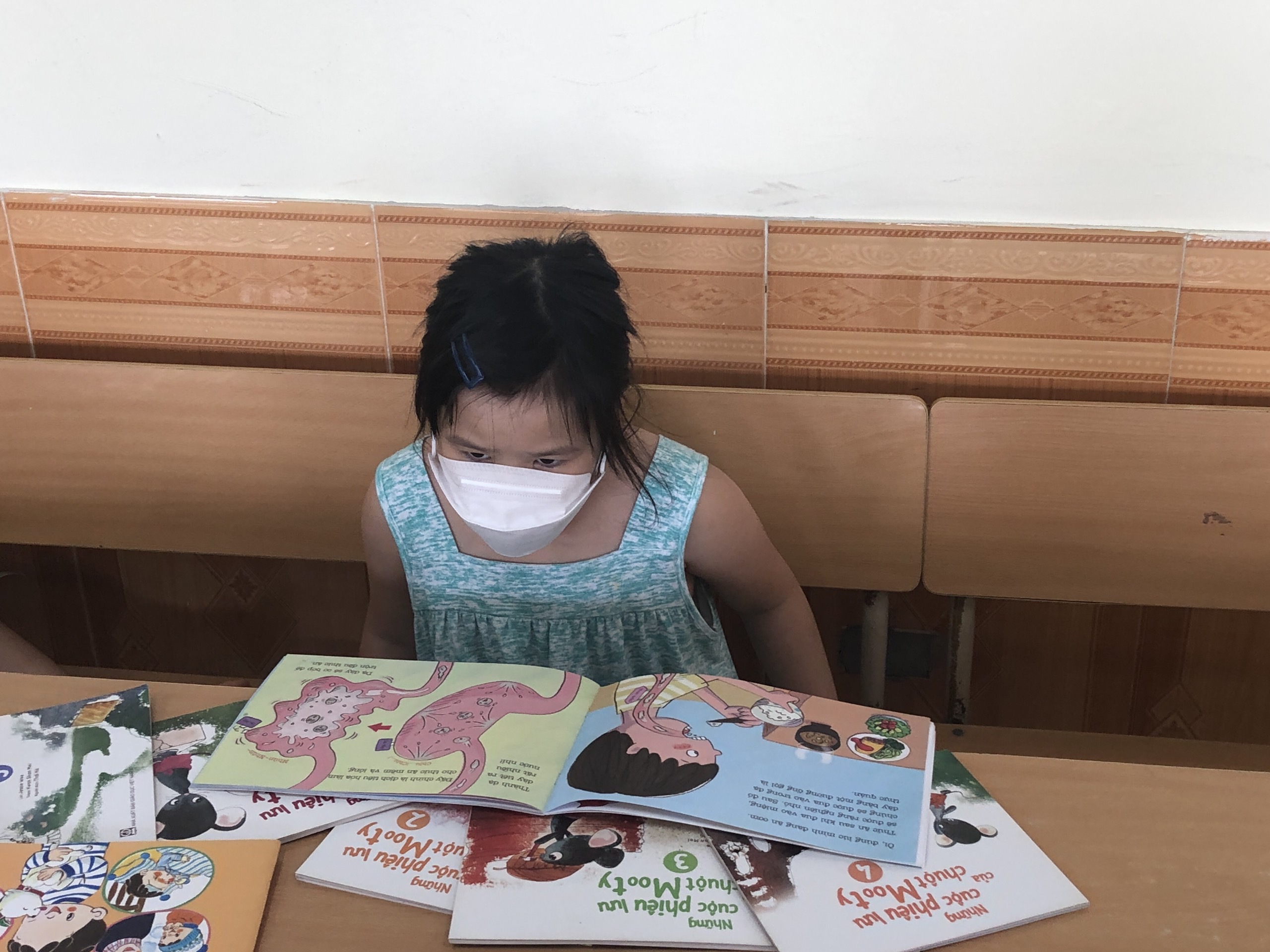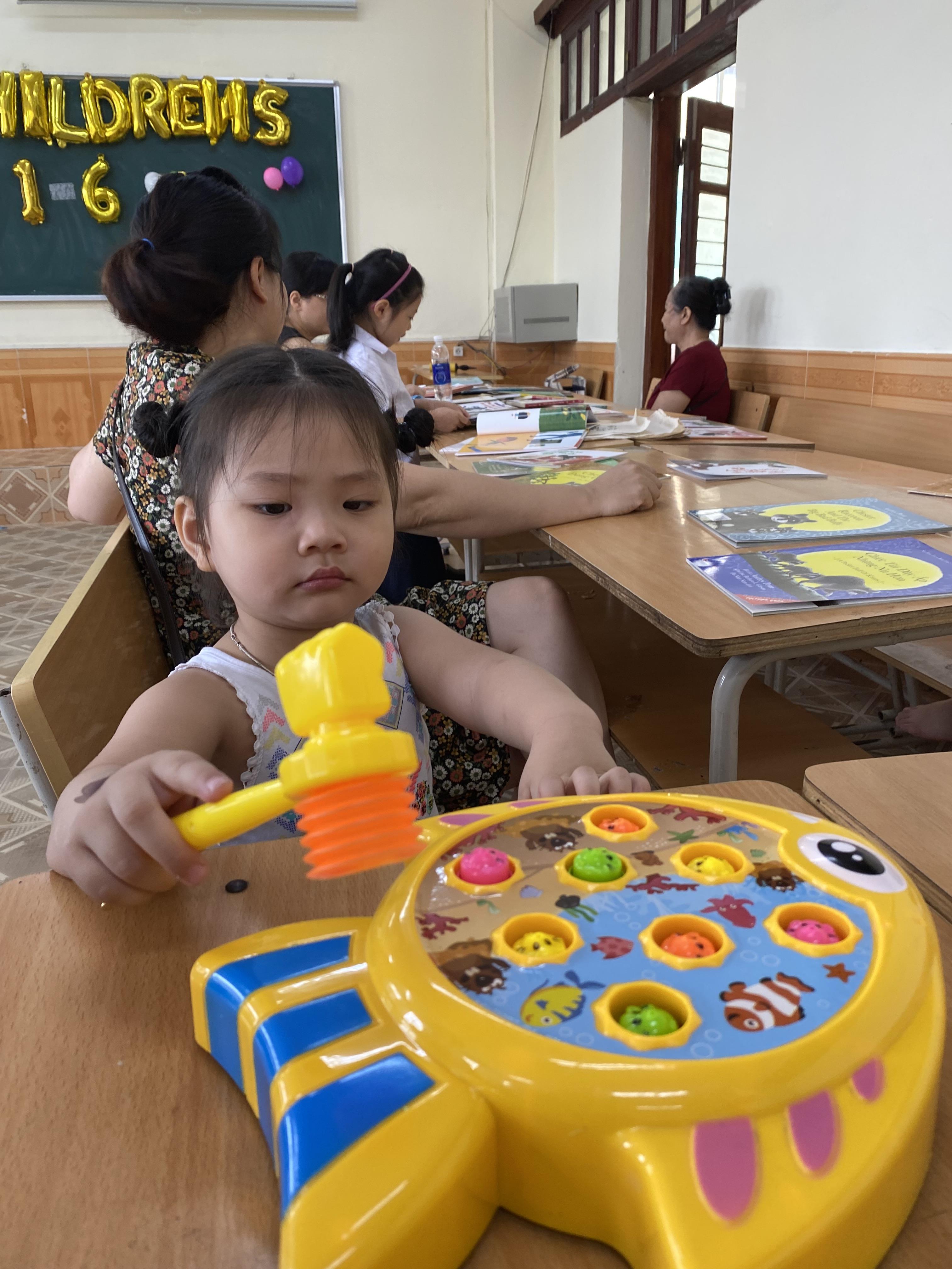 Trong căn phòng nhỏ 508 nhà D3 các con được chia ra 5 quầy cùng với các poster vui nhộn để các cháu cùng các bà, các mẹ thưởng thức và khám phá. Quầy đầu tiên thu hút rất nhiều cháu mà chương trình dành tặng cho các con là SÁCH và TRUYỆN - đây là quầy mà cô Hương Quỳnh cùng hai bạn con cô là Diệu An và Hà An đã đặc biệt chọn lựa từ những kho truyện thiếu nhi trong và ngoài nước với những câu truyện đầy kỳ thú cho lứa tuổi thần tiên của các con. Các độc giả nhí như cháu Thuỳ Dương con của mẹ Thanh Xuân, các cháu Bảo Ngọc, Bảo Châu con của mẹ Kiều Giang, hay cháu Chu Lâm con của mẹ Doãn Linh dù chua đi học nhưng cũng say sưa khám phá. Điều đặc biệt nữa là sau khi đọc truyện, các cháu được tặng mang về bất kỳ truyện nào mình thích. Tiếp theo các cháu được thoả thích vui chơi tại quầy ĐỒ CHƠI, các bạn nhỏ như Võ Bách, Nguyên Thảo con của mẹ Nguyễn Nhàn thì câu cá, hay cháu Ngọc Đan con của mẹ Thùy Anh, các cháu Bảo Nhi, Phúc Anh con của mẹ Đinh Hương, các cháu An Vy, Diệp Thư con của mẹ Phạm Thuỷ thì chơi trò đập chuột, các cháu lớn hơn như Quang Thắng con của mẹ Phạm Vân Anh, cháu Bình Nguyên con của mẹ Thanh Thuý, cháu Minh Bảo con của mẹ Bích Nguyên thì xếp hình. Quầy tiếp theo có nhiều màu sắc và chiếm không gian lớn là FOODS and DRINKS ( Đồ ăn và đồ uống) -đây là quầy đặc biệt từ sự chuẩn bị và chọn lựa kỹ càng của các mẹ trong khoa để dành cho các con những món quà vặt ngon, bổ dưỡng và đảm bảo an toàn thực phẩm nhất. Hai khu đồ ngọt và mặn với những chiếc bánh ngọt thơm ngon, những hộp kẹo cầu vồng bắt mắt, những quả nho, chôm chôm căng mọng, những hộp sữa chua xinh xắn, những đĩa cơm cuộn đều tăm tắp…là biết các mẹ Thạch Thuỷ, Cao Giang, Kiều Giang, Doãn Linh yêu các con biết chừng nào. Một quầy nữa là cả sự yêu thích của các con và các mẹ là quầy THỜI TRANG. Tuy chỉ là một góc nhỏ xinh và khiêm tốn nhưng với sự dẫn dắt nhiệt tình và am hiểu của cô giáo trẻ Chu Vân Anh thì những đôi giày xinh xắn, những tuýp kem dưỡng da be bé, những món đồ được xếp gấp gọn gàng… là nơi trao gửi những tấm chân tình đề cùng nhau hướng tới cái đẹp và hoàn mỹ. Quầy cuối cùng của chương trình vô cùng đặc biệt có tên GÓC TÂM TÌNH - đây là quầy các cháu ghé thăm, chọn cho mình một tấm thiệp nhỏ xinh và cầm bút viết những lời muốn nói gửi tới các bậc sinh thành của mình. Những dòng chữ còn hơi nghiêng ngả, những tâm sự còn chưa kịp viết hết nhưng thực sự là những điều bố, mẹ các con sẽ cảm nhận được tình yêu của các con dành cho bố mẹ thật đáng yêu cũng như những gì nên làm tiếp để các cháu có một tuổi thơ ý nghĩa nhất. Cháu Hồng Nhung con mẹ Hồng liên tâm sự:’ Con cảm ơn ông, bà. Con cảm ơn bố, mẹ. Chị cảm ơn Ru-bi ” và tình yêu của cháu dành cho ông, bà, bố mẹ, em gái bé bỏng là sự bắt đầu của một tâm hồn nhạy cảm, biết yêu thương gia đình. Trong tâm thiệp còn có cả sự yêu thương mảnh đất mà cháu sinh ra và lớn lên được diễn tả rất hồn nhiên” Em yêu Hà Nội” Góc tâm tình là nơi để các cháu giãi bày những mong ước mà cháu ấp ủ như cháu Trúc Lâm con mẹ Cao Giang đã viết:’ Khi nào sinh nhật con mẹ hãy mua cho con một con mèo nhá! Mẹ đừng cho con học thêm nhiều quá” hay cháu Tường Vy con của mẹ Doãn Linh đề đạt” Con không muốn mẹ gọi con dậy sớm!”