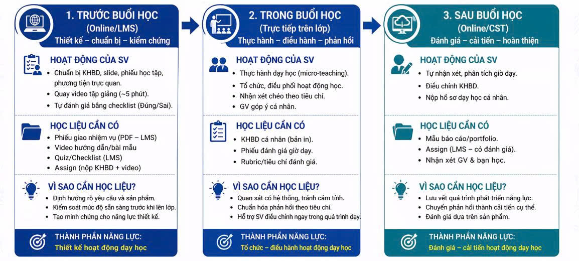 Trong những năm gần đây, dạy học kết hợp đã trở thành một xu hướng nổi bật, được sử dụng ngày càng phổ biến trên thế giới cũng như ở Việt Nam trong giáo dục đại học. Việc kết hợp giữa dạy học trực tiếp và dạy học trực tuyến không chỉ mở rộng không gian học tập, tăng tính linh hoạt, tự học cho người học mà còn tạo điều kiện để giảng viên đổi mới phương pháp, đa dạng hóa học liệu, thực hiện chuyển đổi số tăng cường tương tác và theo dõi tiến trình học tập của sinh viên một cách hiệu quả hơn. Chương trình không chỉ cập nhật xu hướng dạy học kết hợp đang được sử dụng rộng rãi trên thế giới và tại Việt Nam trong giáo dục đại học, mà còn mang đến những hướng dẫn thực hành cụ thể, giúp giảng viên triển khai hiệu quả việc thiết kế học liệu, tổ chức hoạt động học tập và quản lý lớp học trên nền tảng số.