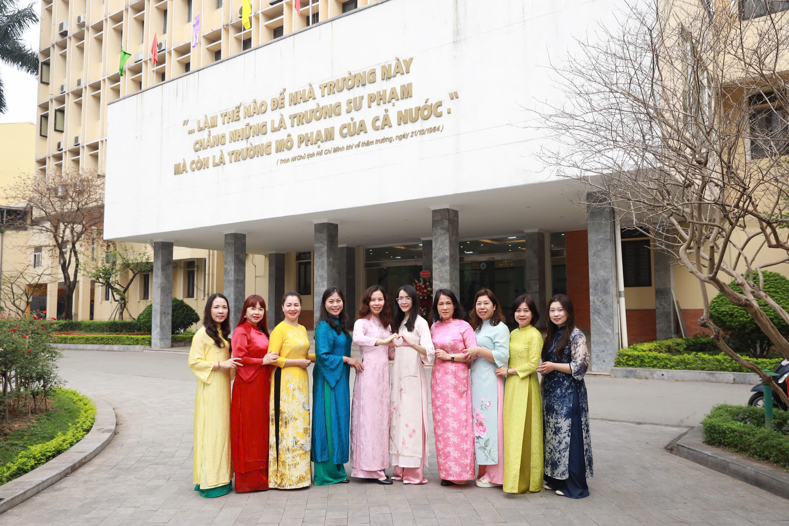 Nhân dịp này, chương trình “Tặng áo dài - Trao gửi yêu thương - Giữ gìn nét đẹp truyền thống” dành tặng các nữ nhà giáo ở các địa phương còn gặp nhiều khó khăn đã được một số Công đoàn Bộ phận triển khai. Mỗi tấm áo dài trao đi mang theo tình cảm, sự trân trọng và lời chúc tốt đẹp của đoàn viên công đoàn nhà trường là sự kết nối ấm áp giữa những người làm nghề giáo ở đồng bằng và vùng cao. Tình cảm yêu thương này đã tiếp thêm niềm tin, động lực để các cô giáo nơi vùng cao, nơi còn nhiều khó khăn tiếp tục vững vàng đứng lớp, giữ gìn nét đẹp áo dài trong mỗi ngày đến trường. Chương trình đã góp phần lan tỏa thông điệp đoàn kết và trách nhiệm với cộng đồng; hơn tất cả là lan tỏa giá trị nhân văn và vẻ đẹp bền vững của tà áo dài Việt Nam tới muôn nơi.