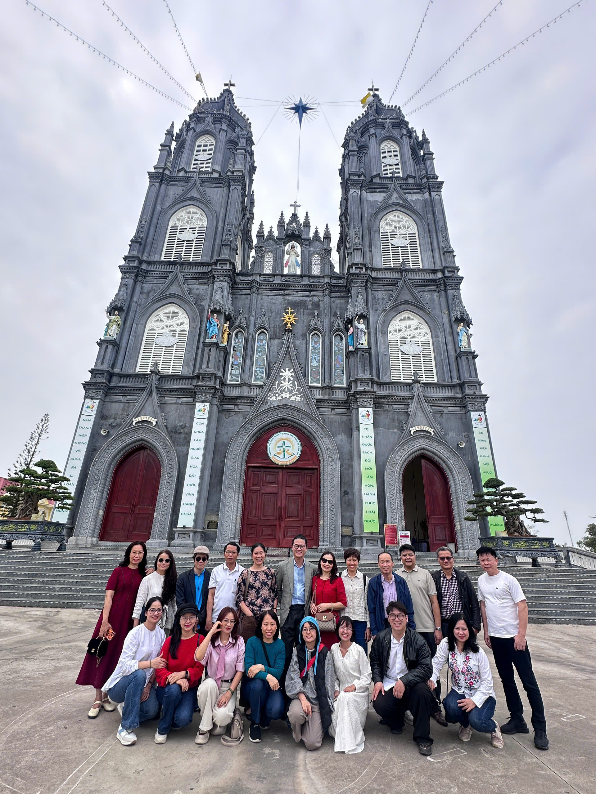 Hành trình “Hà Nội - Móng Cái - Hà Nội” mở đầu với điểm dừng chân tại Chùa Cái Bầu - một trong những ngôi chùa ven biển đẹp nhất Việt Nam. Tọa lạc trên sườn đồi hướng ra vịnh Bái Tử Long, chùa gây ấn tượng bởi không gian thanh tịnh, kiến trúc uy nghiêm và hài hòa với thiên nhiên. Đây không chỉ là nơi thờ Phật mà còn là không gian tưởng niệm các anh hùng thời Trần, gợi nhắc những chiến công lịch sử hào hùng. Tại đây, các thầy cô đã thành tâm dâng, cầu bình an và tận hưởng sự an yên trong tâm hồn.