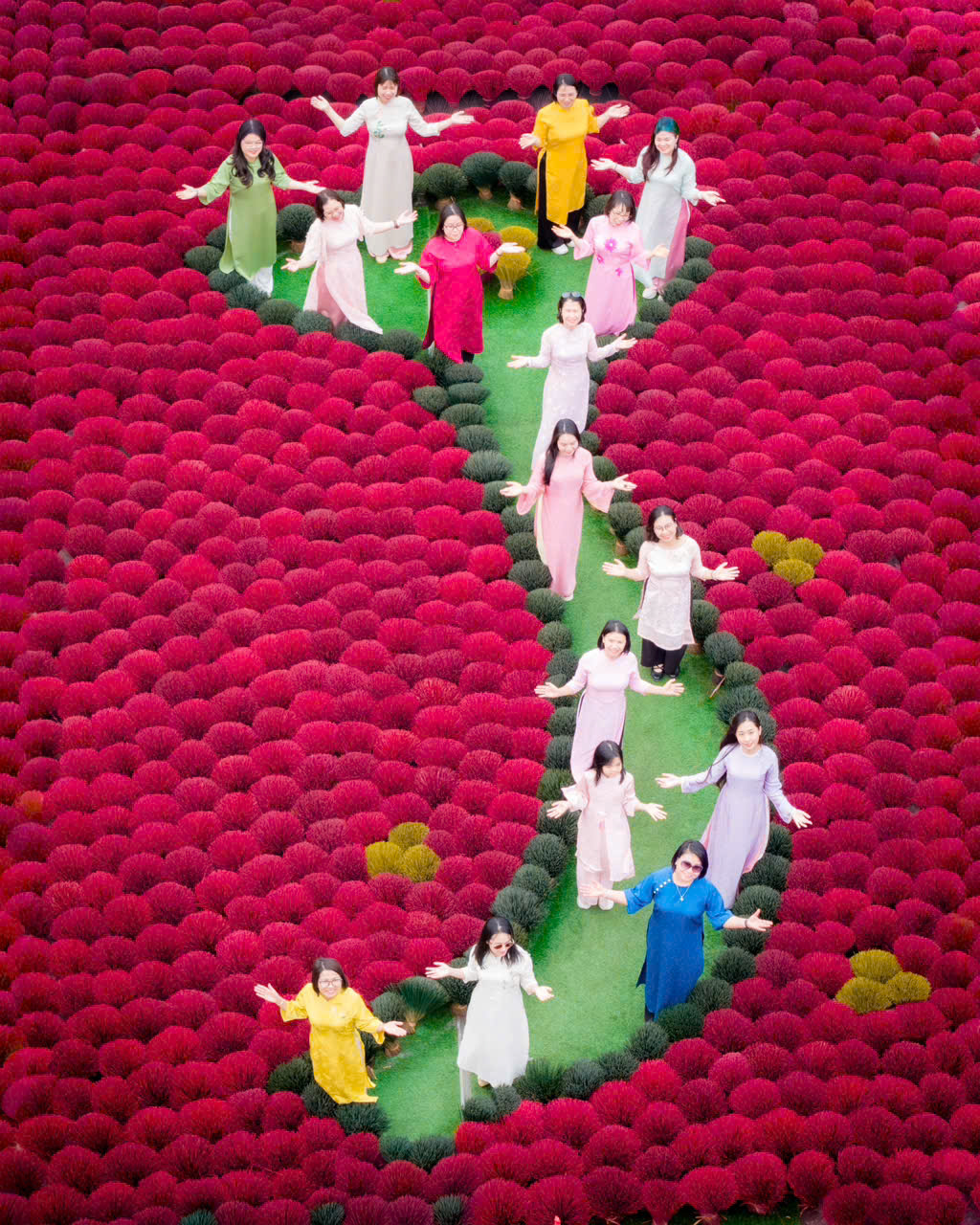 Trong chuỗi hoạt động chào mừng 8/3, các nữ cán bộ của Khoa còn có dịp tham gia trải nghiệm, thăm quan làng hương Quảng Phú Cầu, nơi lưu giữ một nghề truyền thống đặc sắc của Hà Nội. Trong sắc màu rực rỡ của những bó hương, các cô giáo duyên dáng trong tà áo dài đã cùng lưu lại những khoảnh khắc đẹp bên dáng hình Tổ quốc, tạo nên những hình ảnh vừa mềm mại, tự hào vừa đậm đà bản sắc văn hóa Việt.
