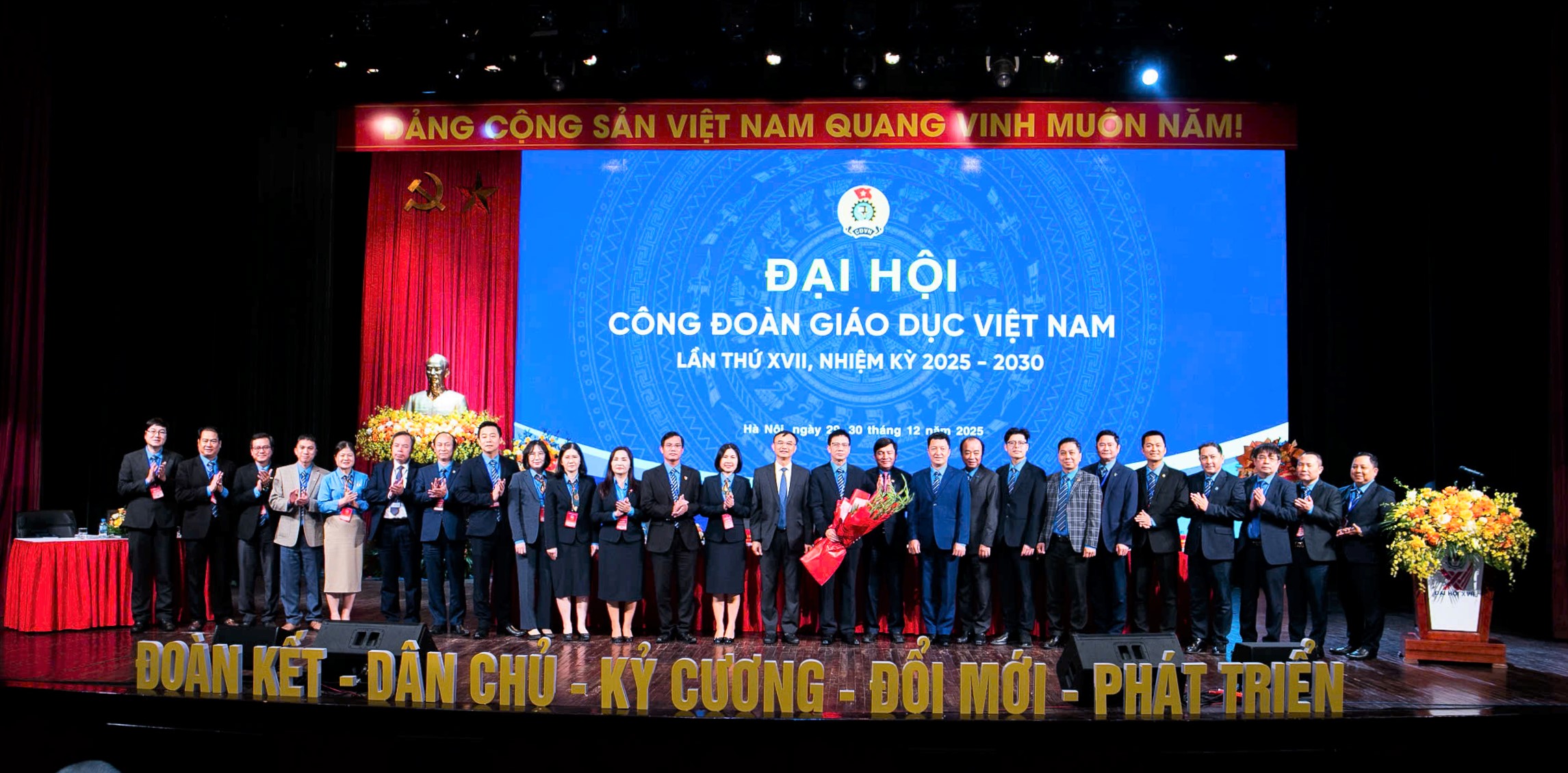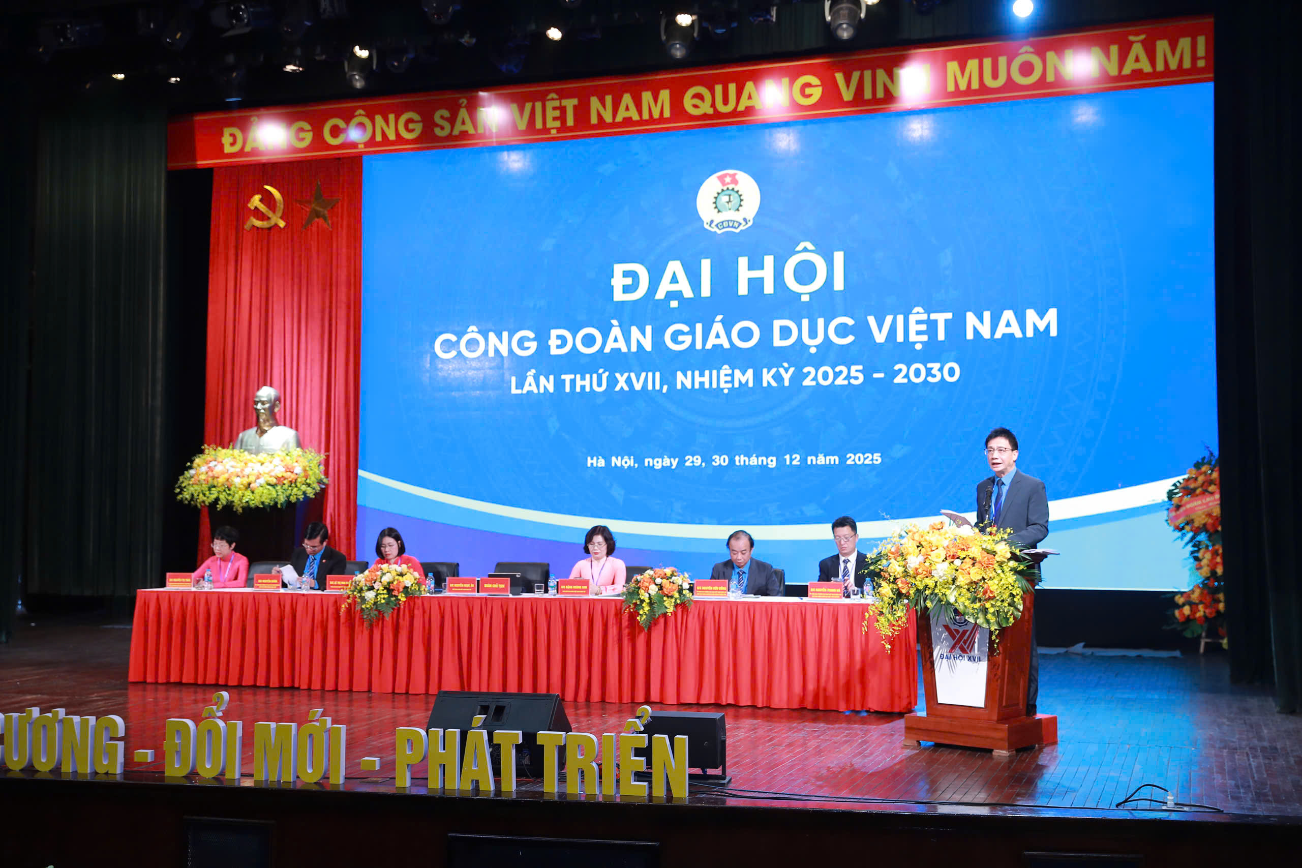 Trong hai ngày 29 và 30/12/2025, Đại hội Công đoàn Giáo dục Việt Nam lần thứ XVII, nhiệm kỳ 2025 - 2030 đã được tổ chức thành công tốt đẹp. Tới dự Đại hội có các đồng chí: Nguyễn Xuân Hùng - Phó Chủ tịch Tổng Liên đoàn Lao động Việt Nam; Nguyễn Viết Lộc - Phó Bí thư Đảng ủy Bộ Giáo dục và Đào tạo và 150 đại biểu đại diện cho gần 42 nghìn đoàn viên, cán bộ, nhà giáo, người lao động ngành giáo dục.