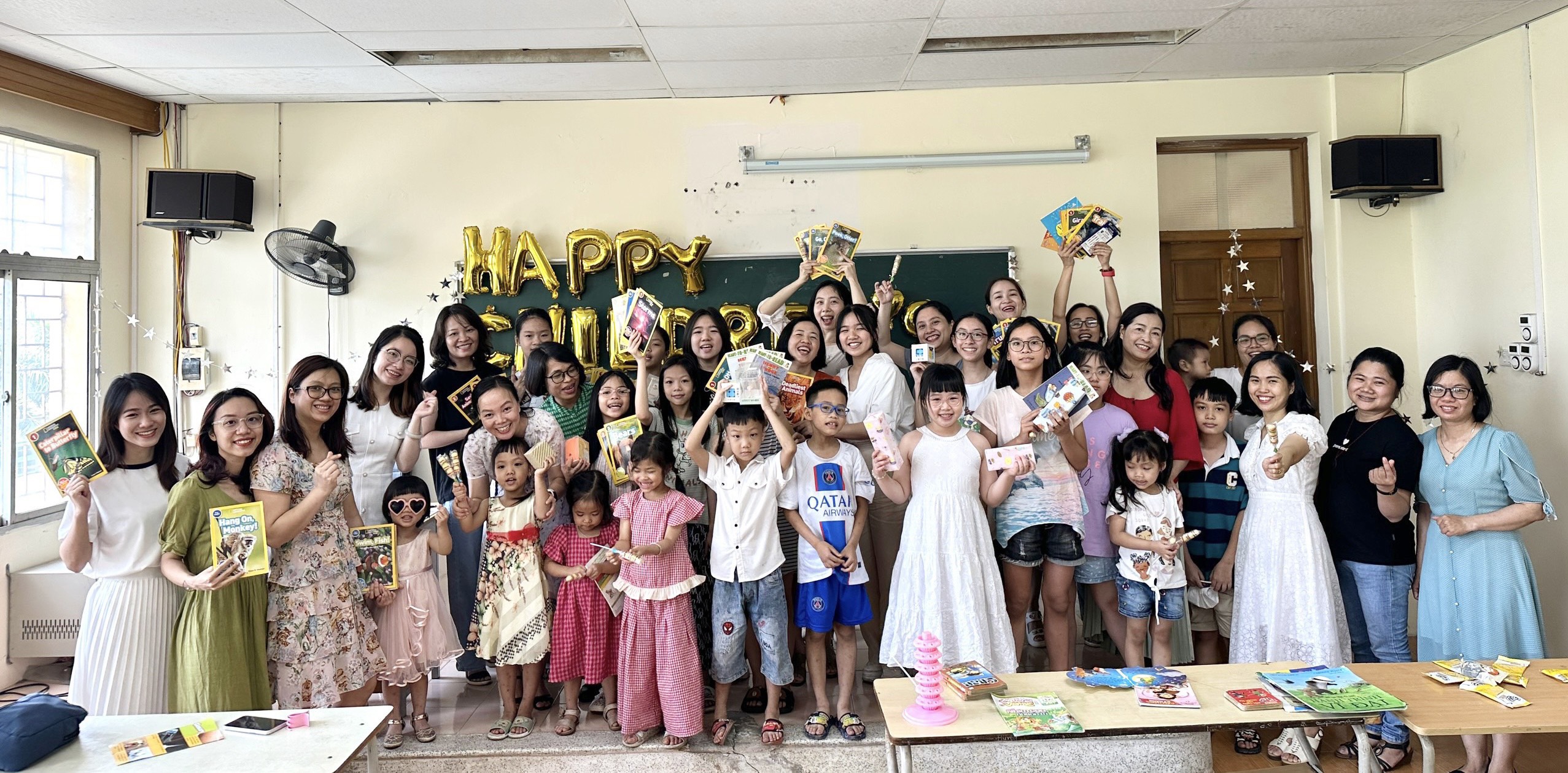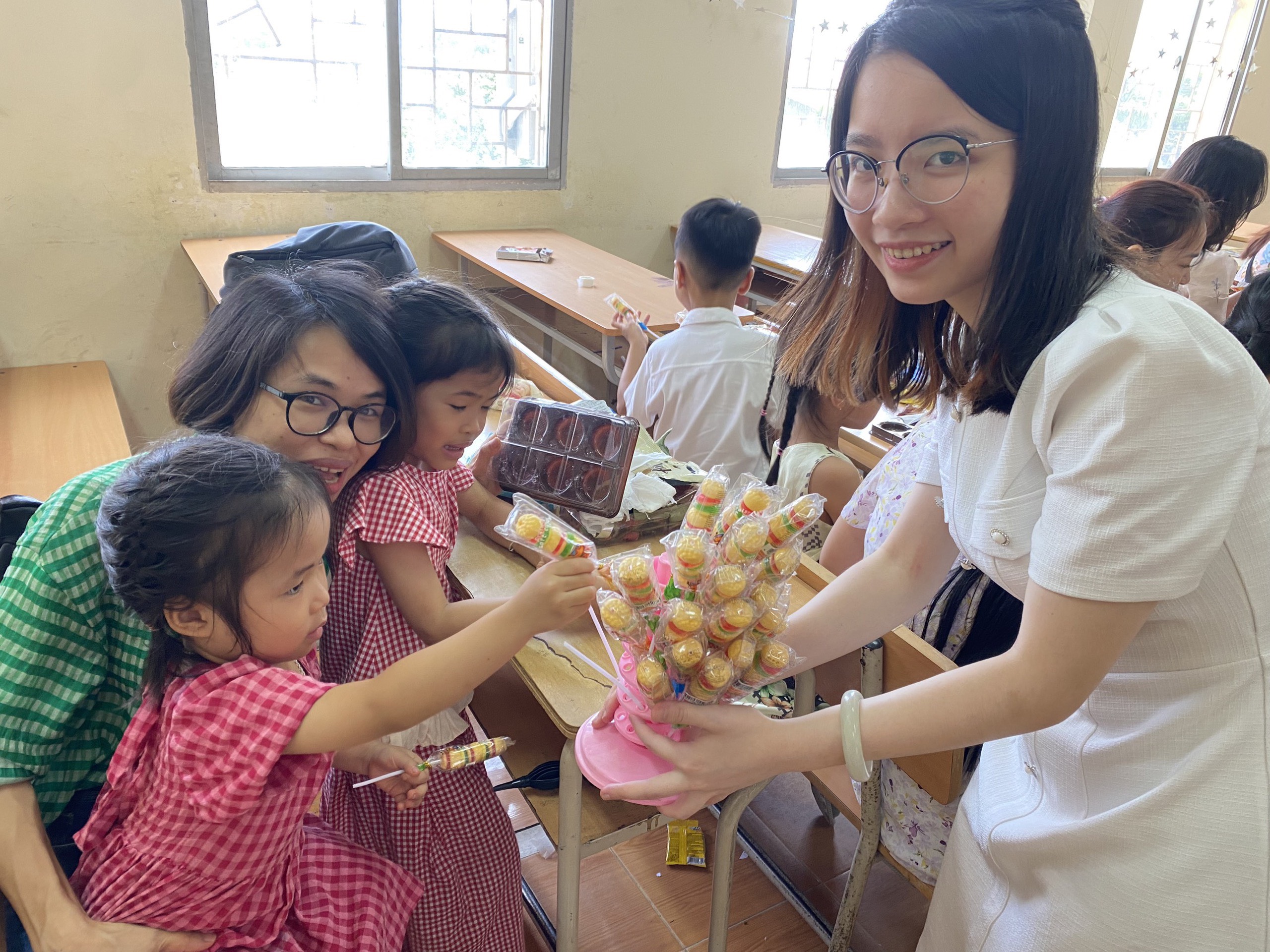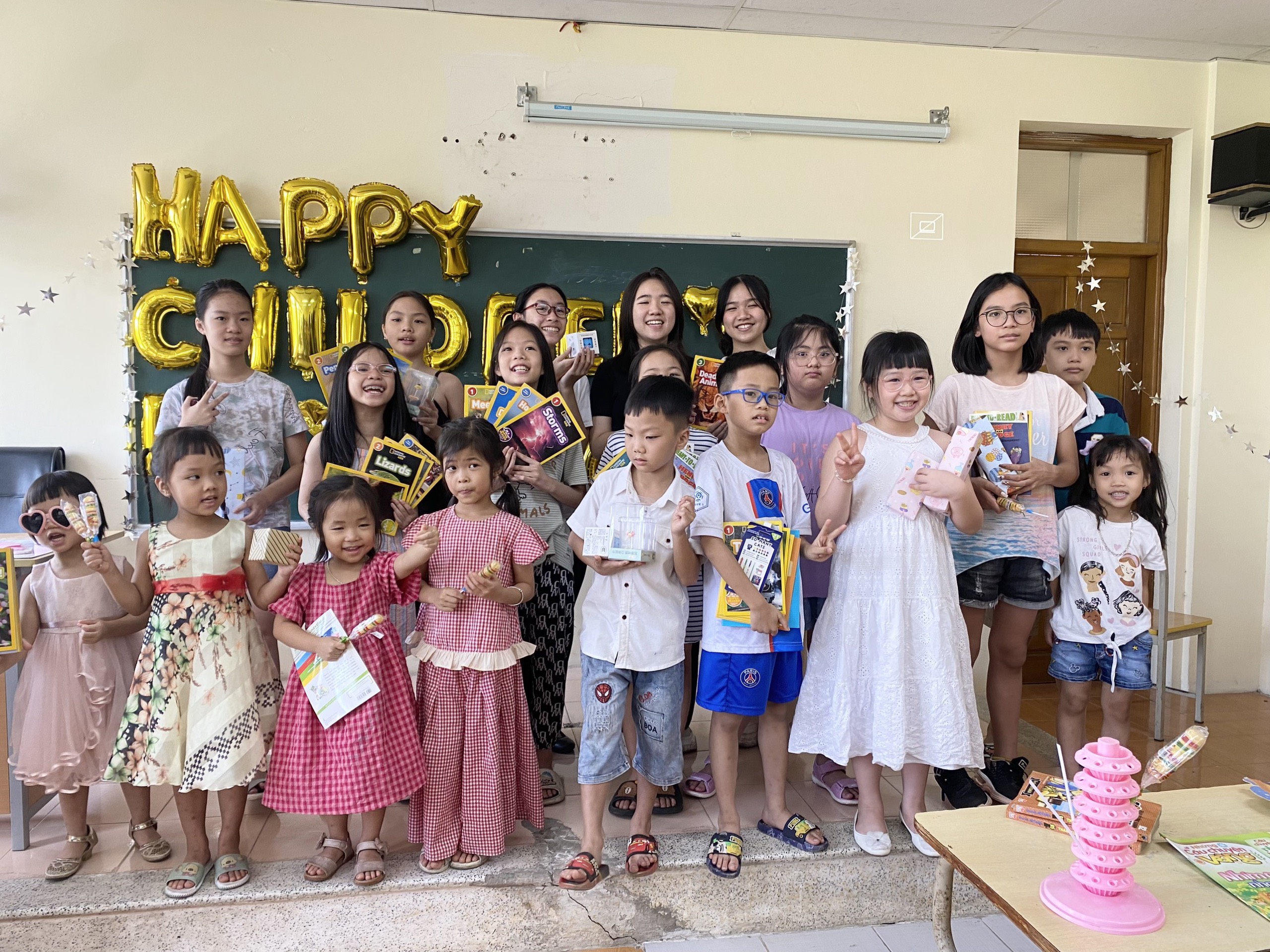 Đón ngày Quốc tế thiếu nhi trong một sáng mùa hè tràn ngập nắng vàng và cũng đầy sôi động khi tất cả các cháu được các bà, các bố, mẹ, cô Trần Hương Quỳnh đại diện Ban Chủ nhiệm Khoa, cô Lưu Thị Kim Nhung đại diện Trung tâm Phát triển Giáo dục và Kỹ thuật số, cô Đỗ Thị Phi Nga - Nguyên Chủ tịch Công đoàn Khoa cùng các cô chú trong chi đoàn cán bộ đã yêu thương gửi tới các cháu những món quà về vật chất và tinh thần đong đầy tình yêu và mong muốn tột cùng là để các cháu luôn luôn có những cơ hội được học tập, phát triển, được toả sáng với cái tên trừu mến là những BÉ F.O.E THÔNG THÁI.