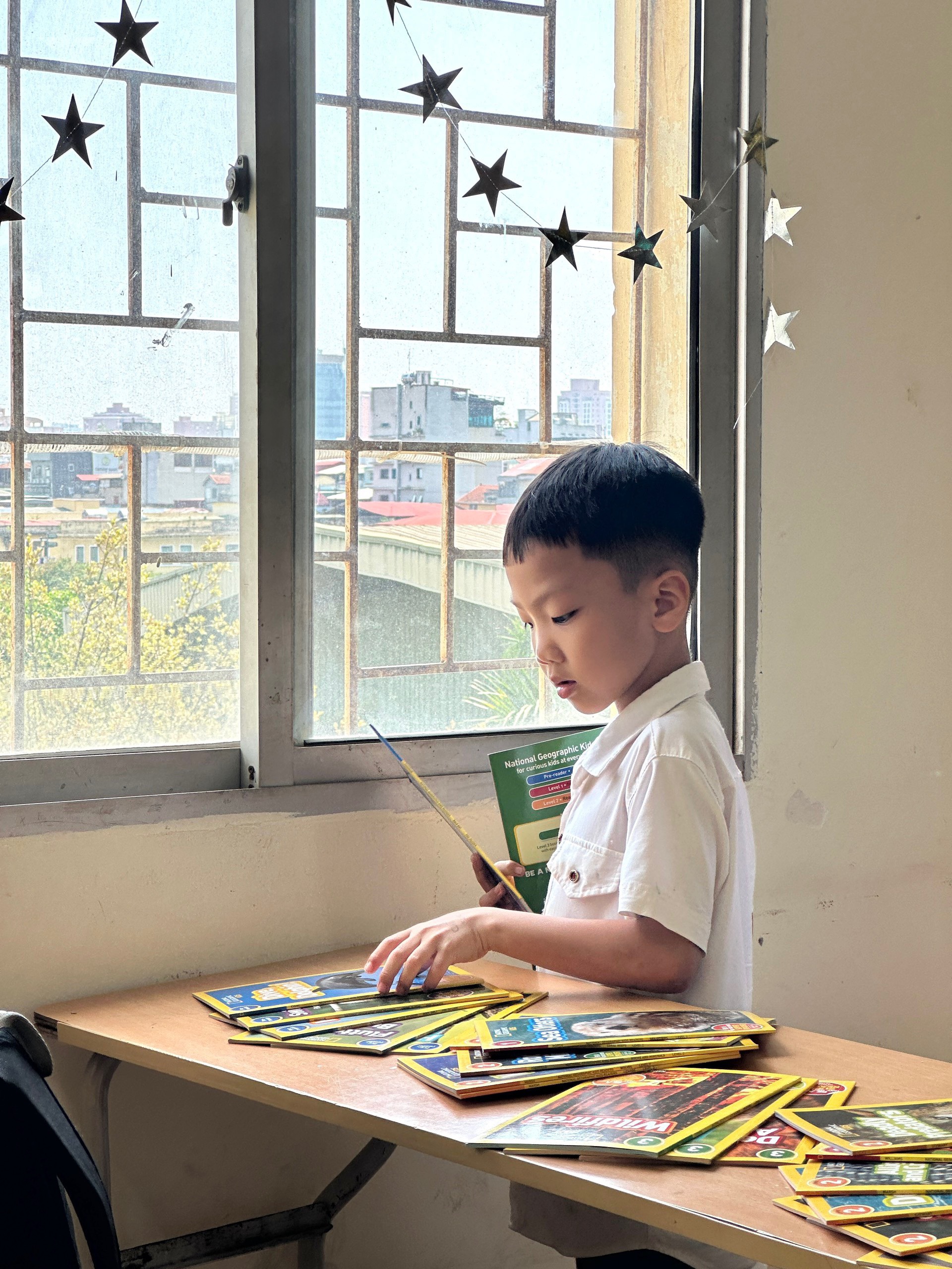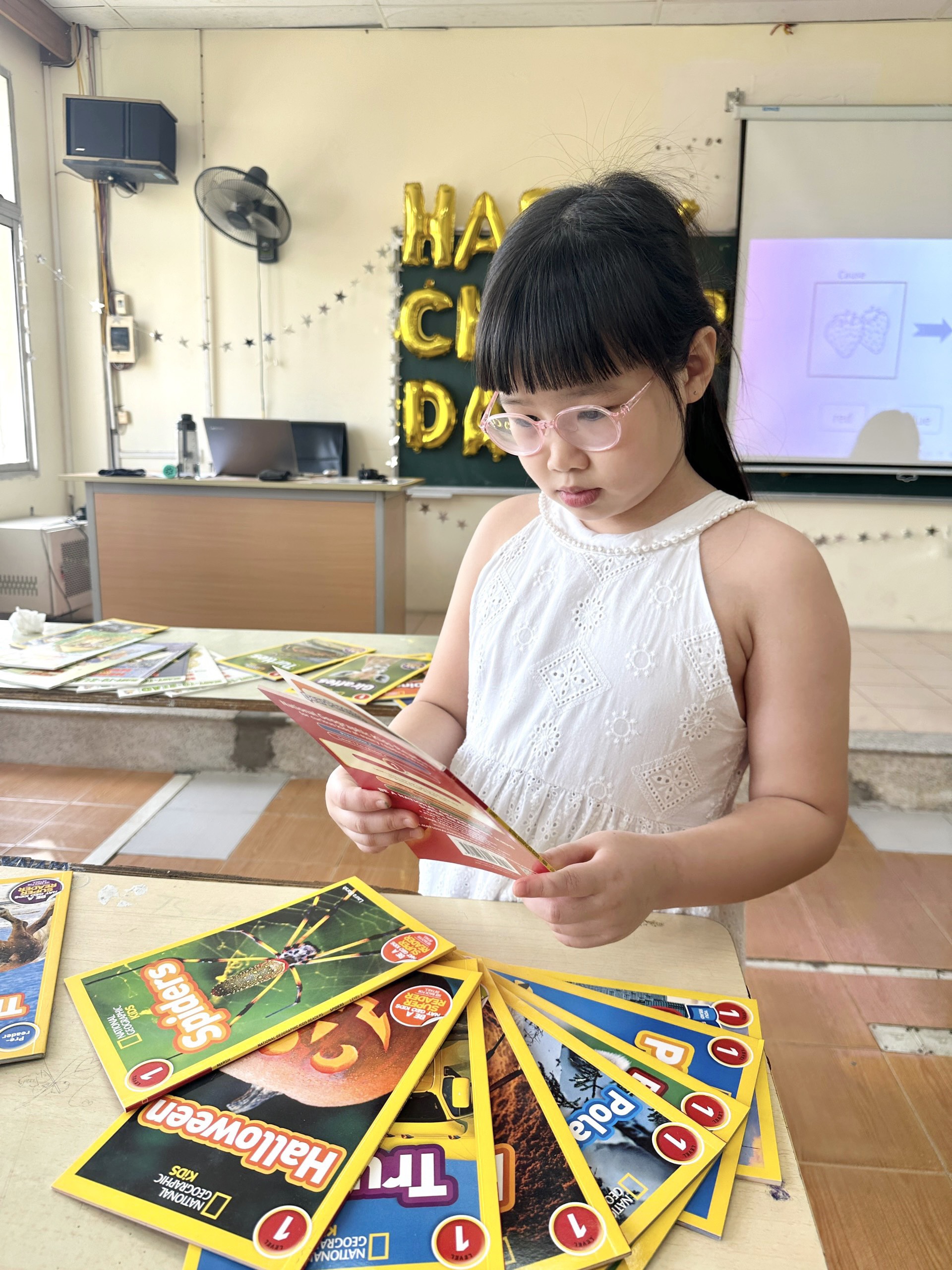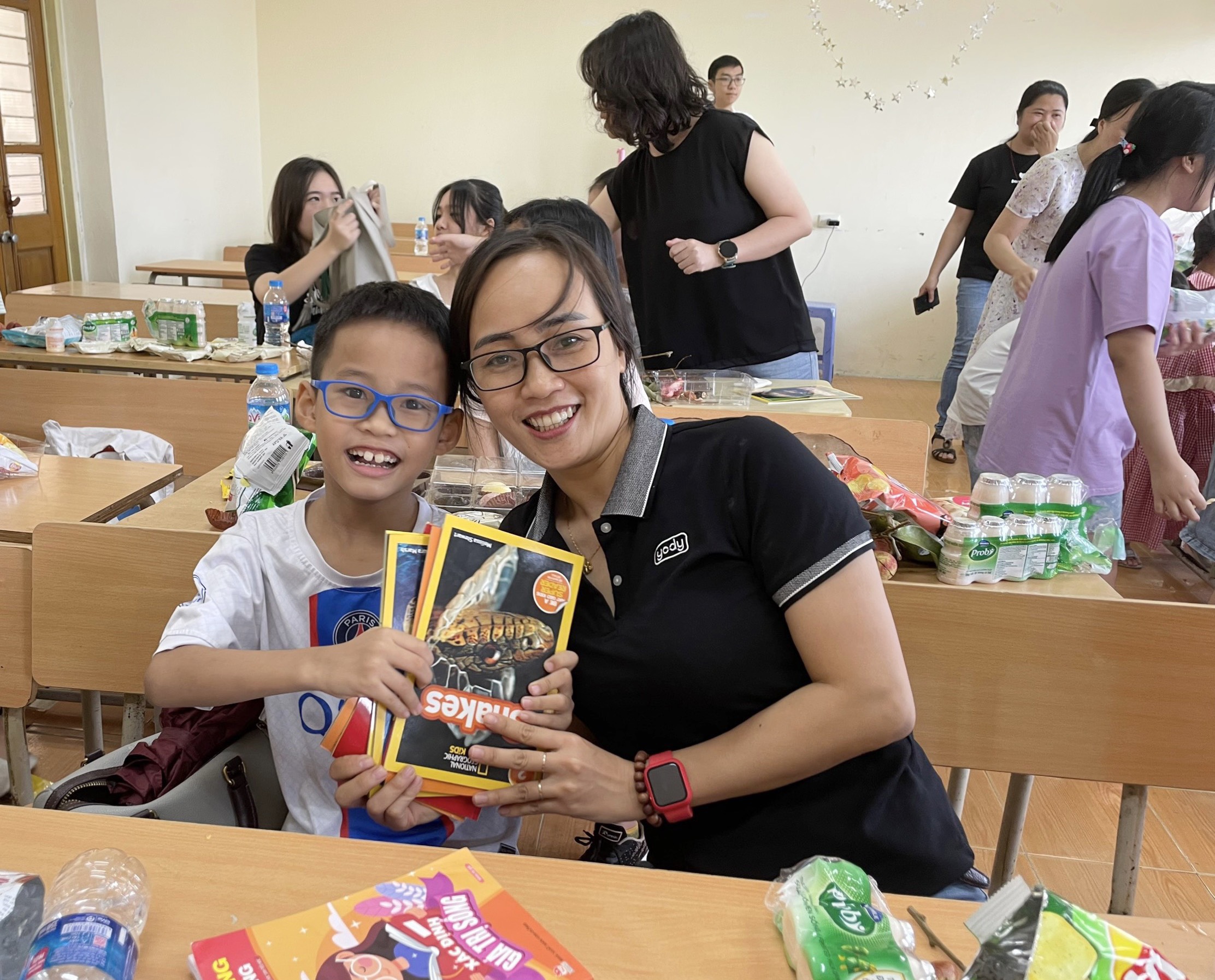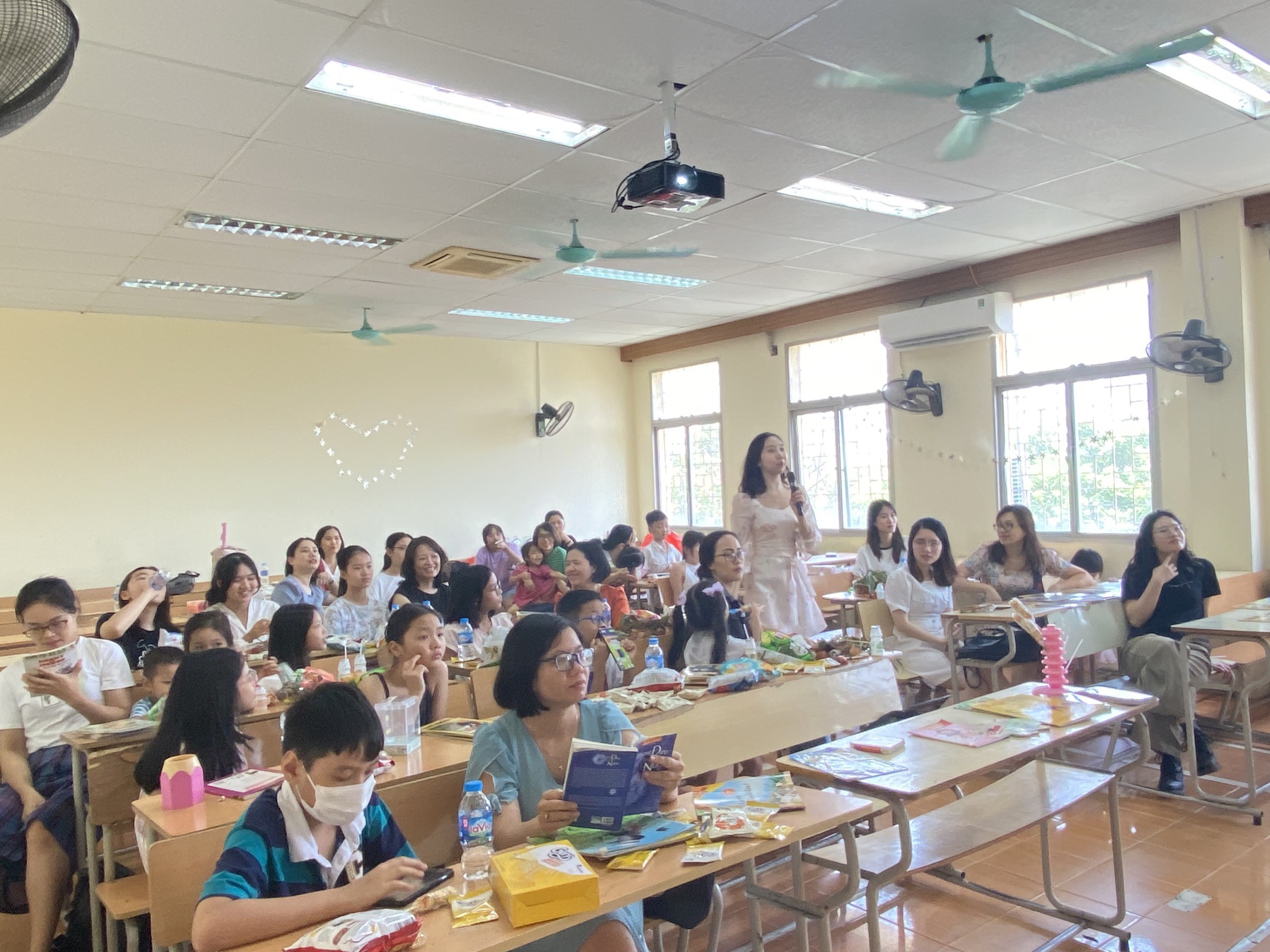 Mở đầu chương trình là phần ĐỔI SÁCH LẤY SÁCH. Trước khi tới địa điểm của chương trình các cháu đã chuẩn bị cho mình từ 1 tới 3 cuốn sách hoặc truyện mà mình đã đọc và mỗi cháu sẽ được tham quan quầy sách, truyện để thoải mái lựa chọn mang về những cuốn sách, truyện mà các bạn cùng mang tới. Có một sự lựa chọn sách, truyện thoải mái của các cháu phải kể tới sự tài trợ hàng chục cuốn sách, truyện cả tiếng Anh và tiếng Việt rất thú vị và bắt mắt của cô Hương Quỳnh - Trưởng khoa tiếng Anh. Nhìn các độc giả nhí Trang Nhung, Bảo Nhi con của mẹ Đinh Hương, Quang Khôi con của mẹ Phan Bích, An Vy, Diệp Thư con của mẹ Phạm Thuỷ… say mê lựa chọn cho mình những cuốn sách, truyện màu sắc hoặc những cuốn sách mình chưa đọc với sự hào hứng đã thấy văn hoá đọc của các con đã được các thầy, cô, bố, mẹ chăm chút và nuôi dưỡng thành một thói quen bổ ích và hẳn là khi đọc được những điều thông thái từ những cuốn sách, truyện đã được lựa chọn kỹ càng thì tâm hồn của các con được phát triển theo hướng tích cực và các con sẽ được bồi đắp cả các chỉ số IQ, EQ và AQ.