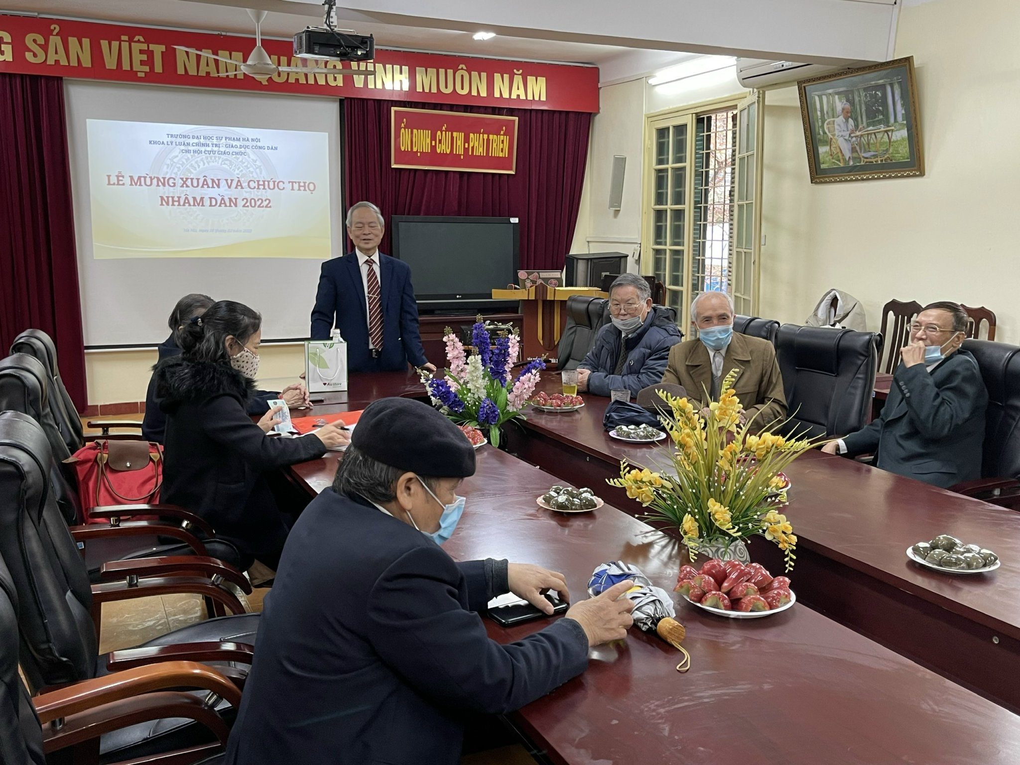 Lễ mừng xuân, mừng thọ là hoạt động thường niên của Hội Cựu giáo chức khoa LLCT – GDCD với mục đích gặp gỡ để tổng kết những hoạt động của Hội sau một năm và đề ra phương hướng hoạt động cho năm tiếp theo. Đồng thời là dịp kết nối, chia sẻ giữa các thành viên, mừng thọ các nhà giáo cao tuổi trong Hội. Thay mặt Đảng uỷ, Ban chủ nhiệm, Ban chấp hành Công đoàn khoa LLCT – GDCD, TS. Tiêu Thị Mỹ Hồng đã gửi lời chúc sức khỏe, an lạc và trường thọ đến các thầy cô cựu giáo chức nhân dịp đầu xuân Nhâm Dần.