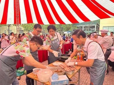 Phần thưởng đặc biệt thứ hai của chúng tôi là không khí thật rộn ràng, ấm áp của những buổi họp hành, trao đổi và tập luyện của các đầu bếp. Để có được buổi ra mắt đầy ấn tượng trong hội thi, chúng tôi đã bàn bạc, trao đổi ý tưởng và đặc biệt là tập luyện tay nghề cho các đầu bếp. Chưa khi nào không khí lại rộn ràng đến thế, chưa khi nào chúng tôi- những thành viên của 3 khoa hợp lại lại háo hức tập luyện đến thế. Sau giờ dạy, từ giảng đường các thầy trở về với Bếp...tập gói nem, nướng chả, tập pha chế nước chấm, làm dưa góp để các cô ở ban Hậu Cần được thỏa sức vui cười và thưởng thức.