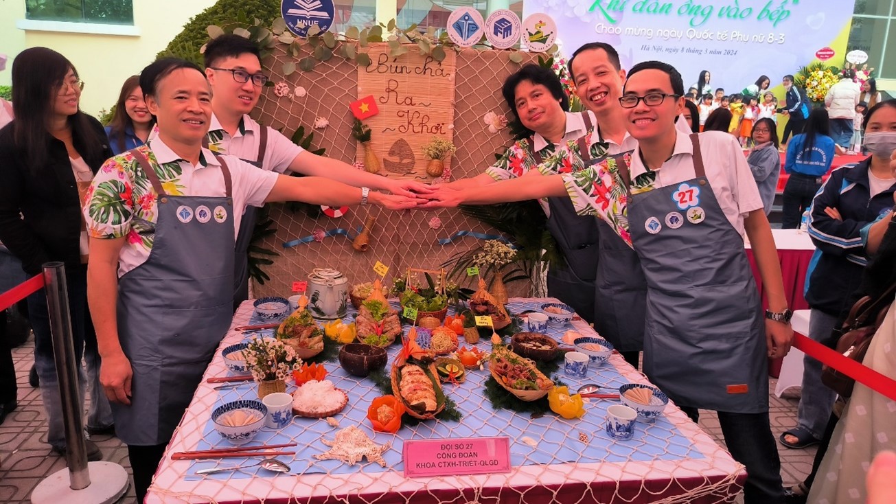 Những ngày tháng 3, khi tiết Xuân còn ngập tràn mọi nơi, thì ở HNUE mùa Xuân cũng tươi thắm, rực rỡ bởi những tà áo dài xinh đẹp rộn ràng nơi giảng đường. Đặc biệt hơn nữa là những bàn tay, khối óc của những người Thầy HNUE vốn quen cầm phấn, cầm bút, vốn quen với con số, cái chữ…thì nay lại bỡ ngỡ mà đầy nhiệt huyết khi gói nem, nướng chả, khi cùng nhau thực hành một công việc rất đặc biệt “Giữ ấm bếp nhà”. Tuần lễ 8/3 qua đi, dấu ấn về một tuần lễ đầy niềm vui, kỷ niệm và những điều đặc biệt còn đọng lại mãi trong chúng tôi, những công đoàn viên của HNUE nói chung và công đoàn viên của liên khoa Triết học, QLGD và CTXH nói riêng.