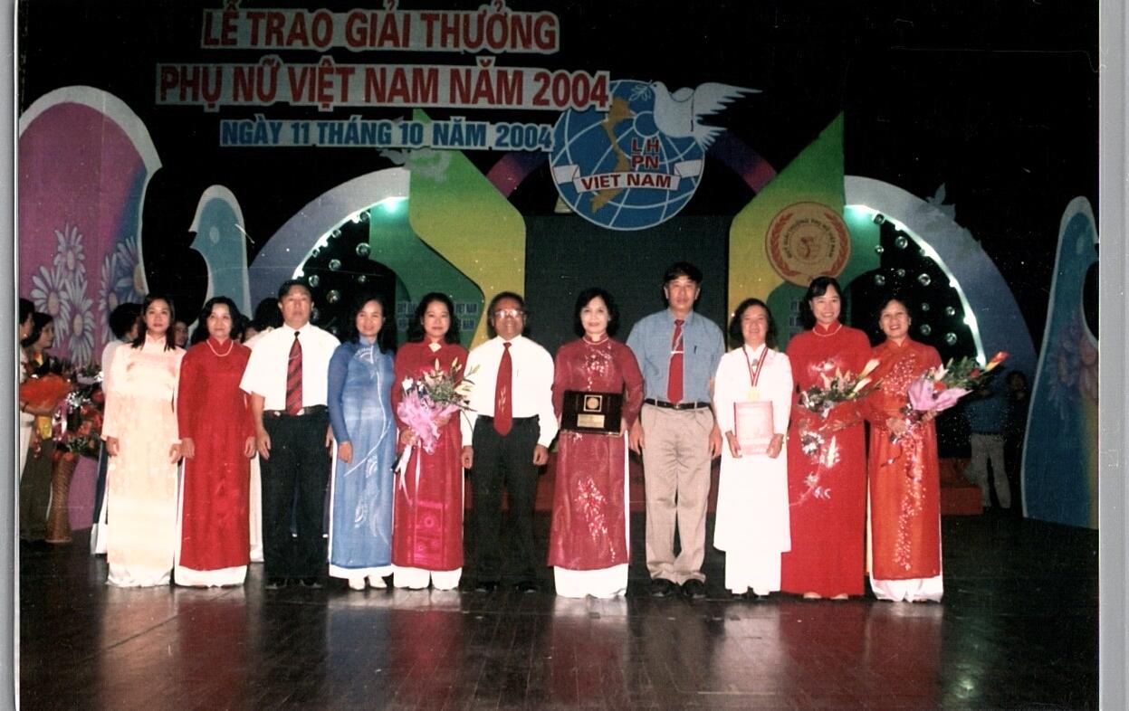 Đại diện tập thể nữ cán bộ nhà giáo, người lao động nhận Giải thưởng Phụ nữ Việt Nam năm 2004