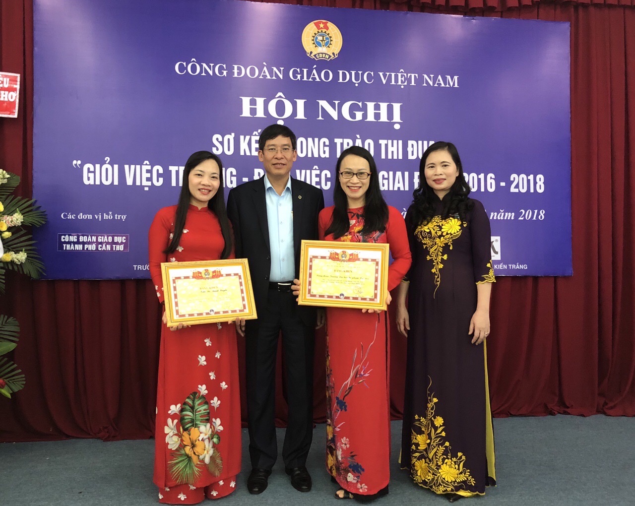 Công đoàn Trường và đ/c Trần Thị Thanh Huyền - Uỷ viên Ban Thường vụ nhận Bằng khen của CĐGD