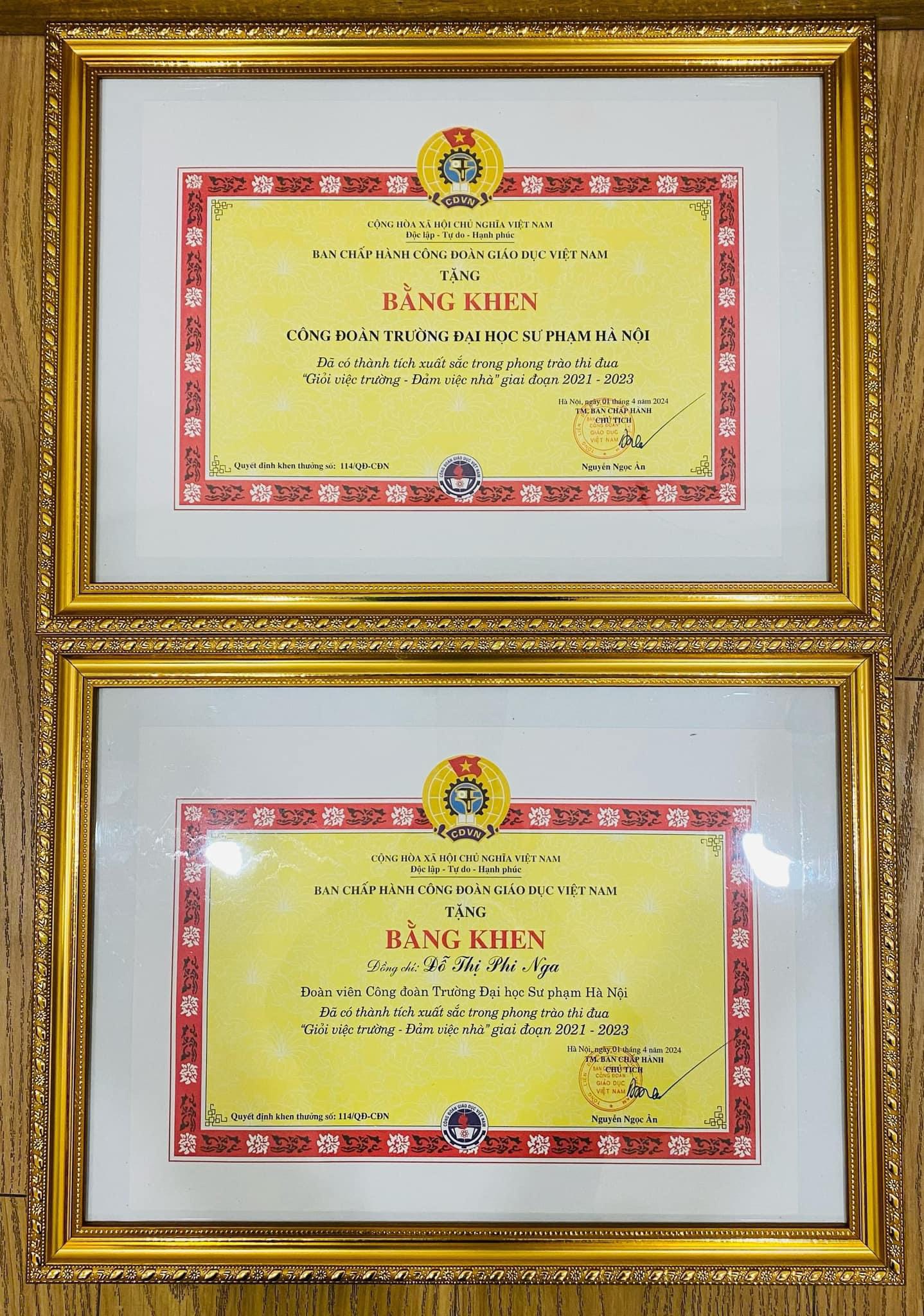 nhận Bằng khen của CĐGD Việt Nam
