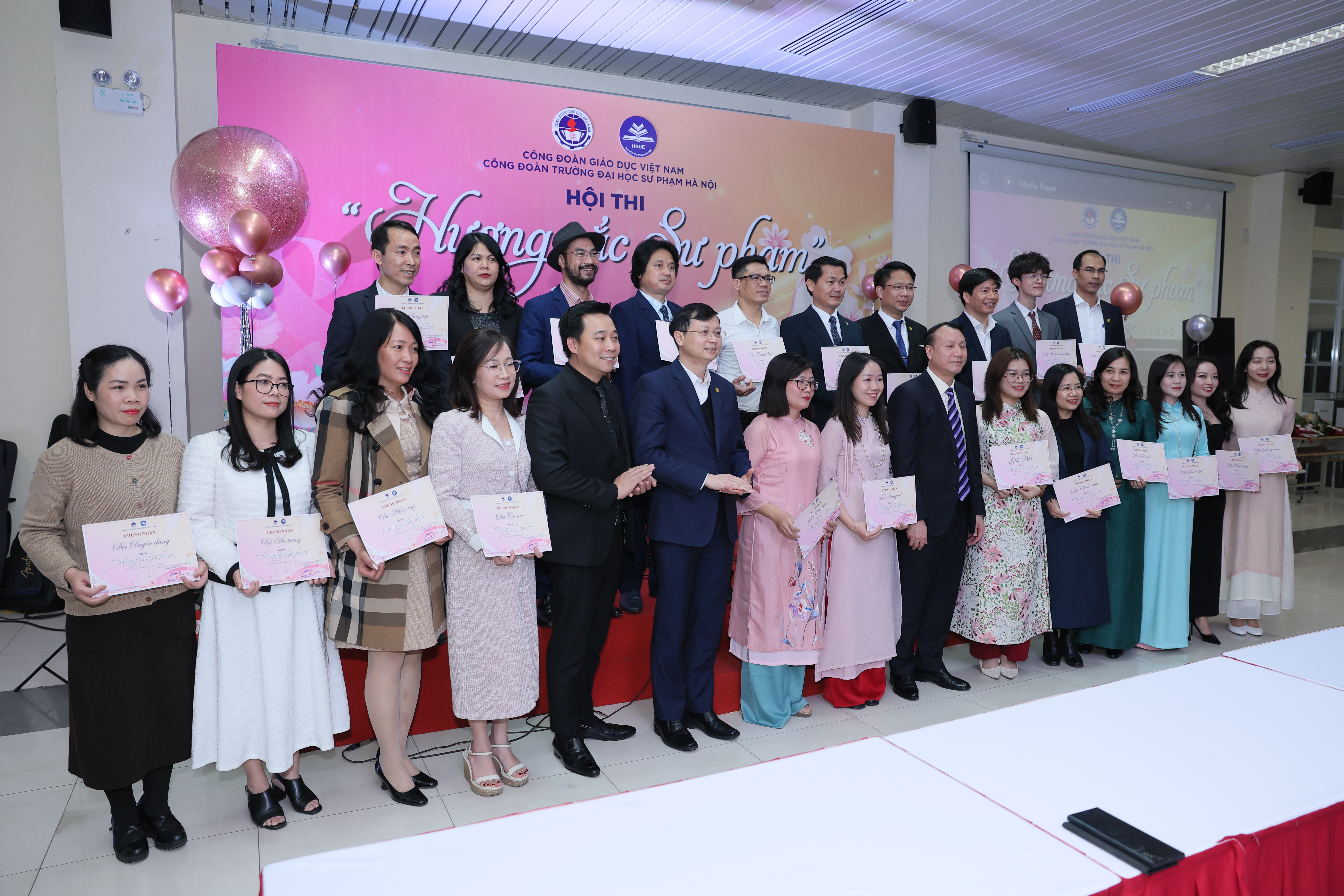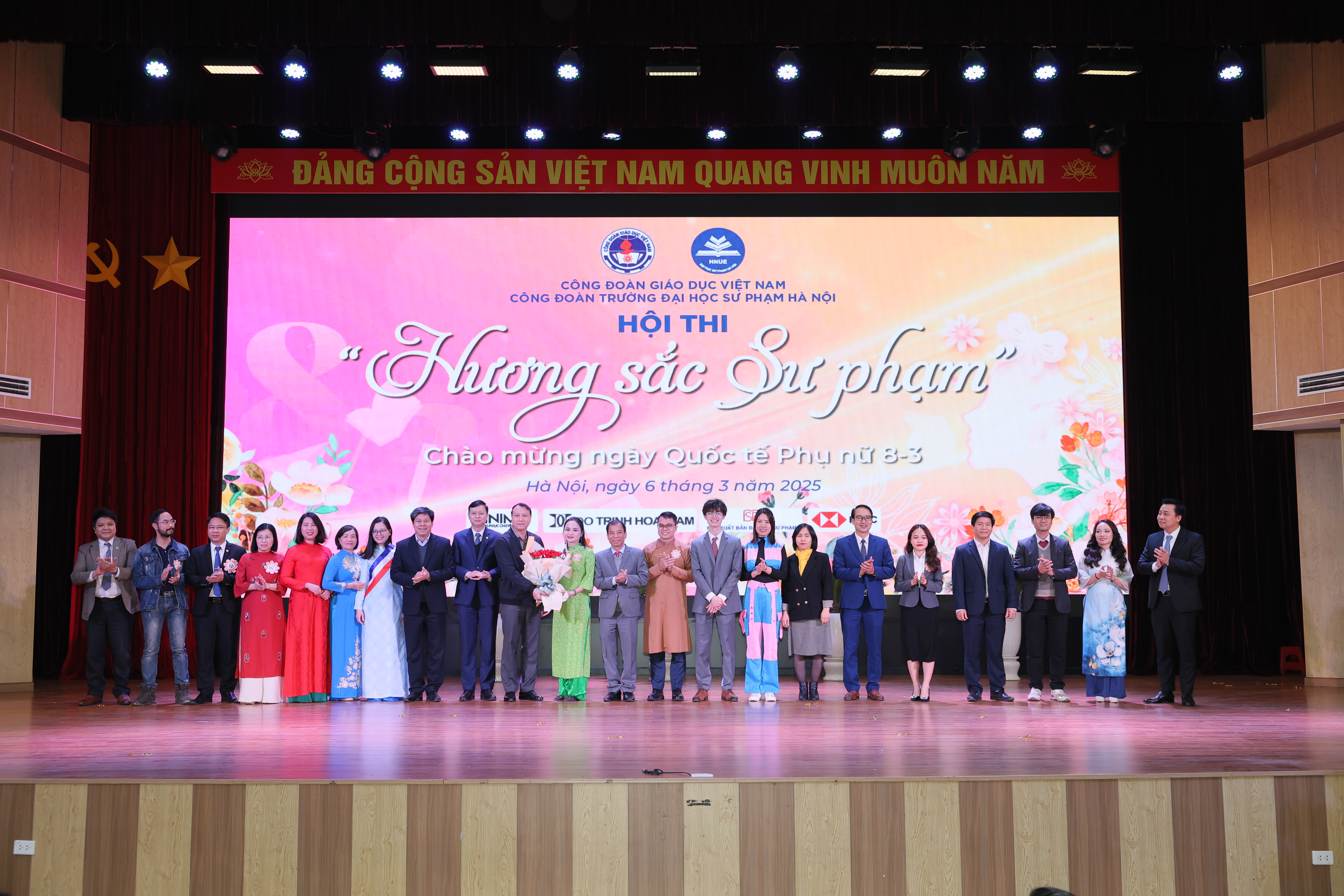 Cuộc thi “Hương sắc Sư phạm” với sự tham gia của 22 đội thi gồm các đoàn viên công đoàn đến từ 39 Công đoàn Bộ phận trong toàn trường. Điều đặc biệt của cuộc thi, một nửa trong số các thí sinh là nam giới, thể hiện sự tham gia mạnh mẽ của cả hai giới trong một sân chơi trí tuệ và sáng tạo. Cuộc thi diễn ra sôi động trong hơn 3 giờ đồng hồ với ba phần hấp dẫn: Dấu ấn rạng ngời, Chinh phục thử thách, Trí tuệ và thông thái. Đây không chỉ là một sân chơi nghệ thuật ý nghĩa, chương trình còn thể hiện tinh thần đổi mới trong tổ chức hoạt động, kết nối các đoàn viên công đoàn trong Nhà trường. Mỗi phần thi là một sắc màu riêng, tạo điều kiện để các thầy cô, đoàn viên công đoàn thể hiện tài năng, bản lĩnh và sự am hiểu sâu sắc về phụ nữ, nghề giáo, mái trường…