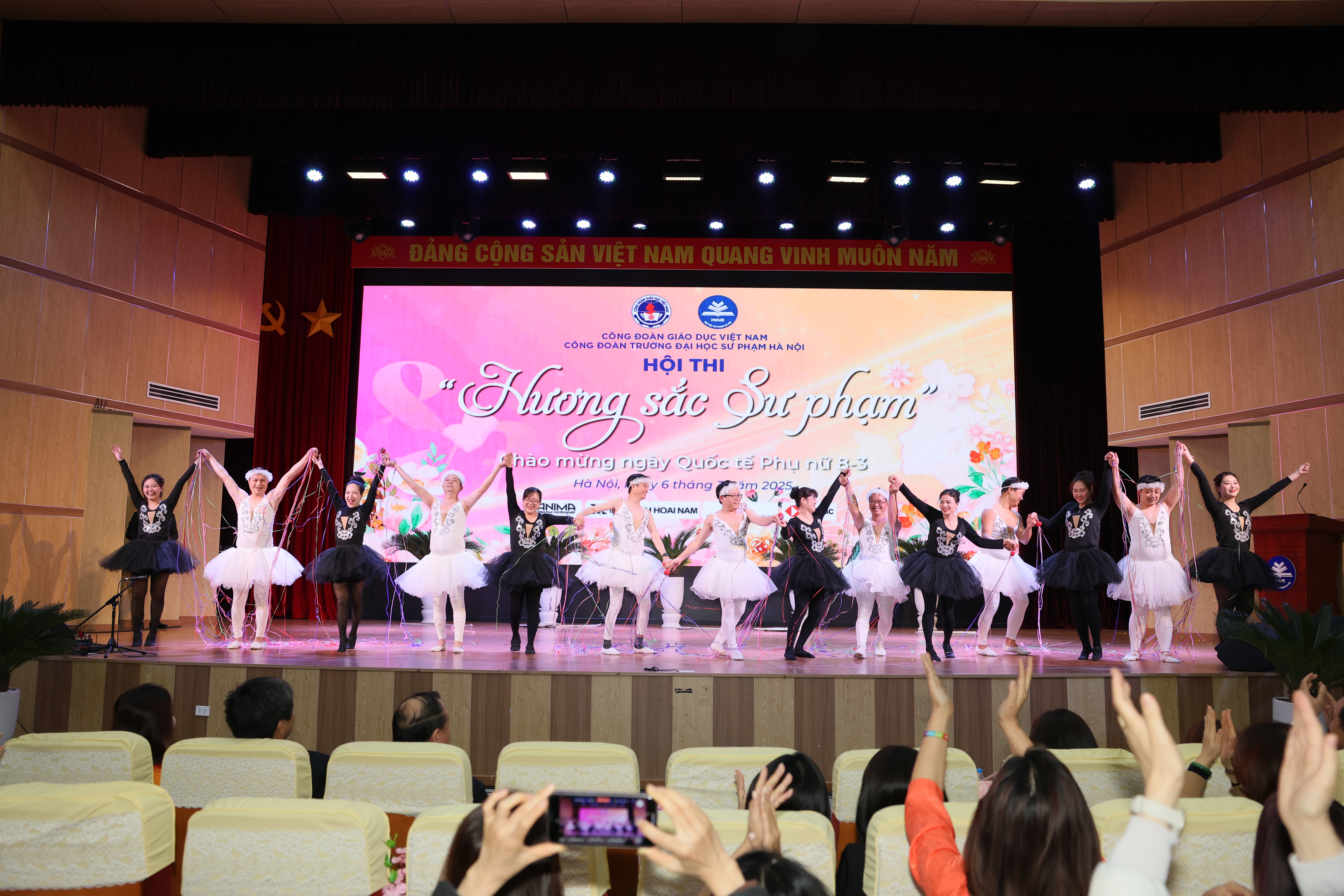 Liên quân Công đoàn Khoa Giáo dục Mầm non - Giáo dục Tiểu học - Sư phạm Kỹ thuật đã mang đến cuộc thi một sự bất ngờ, hài hước và đầy thú vị. Hình ảnh những “Chàng thiên nga trắng” duyên dáng kết hợp cùng những “Nàng thiên nga đen” đầy mạnh mẽ và kiêu hãnh không chỉ tạo nên tiếng cười mà còn truyền tải một thông điệp sâu sắc: Phụ nữ không chỉ đẹp ở sự dịu dàng mà còn ở sự mạnh mẽ, bản lĩnh và tự tin.