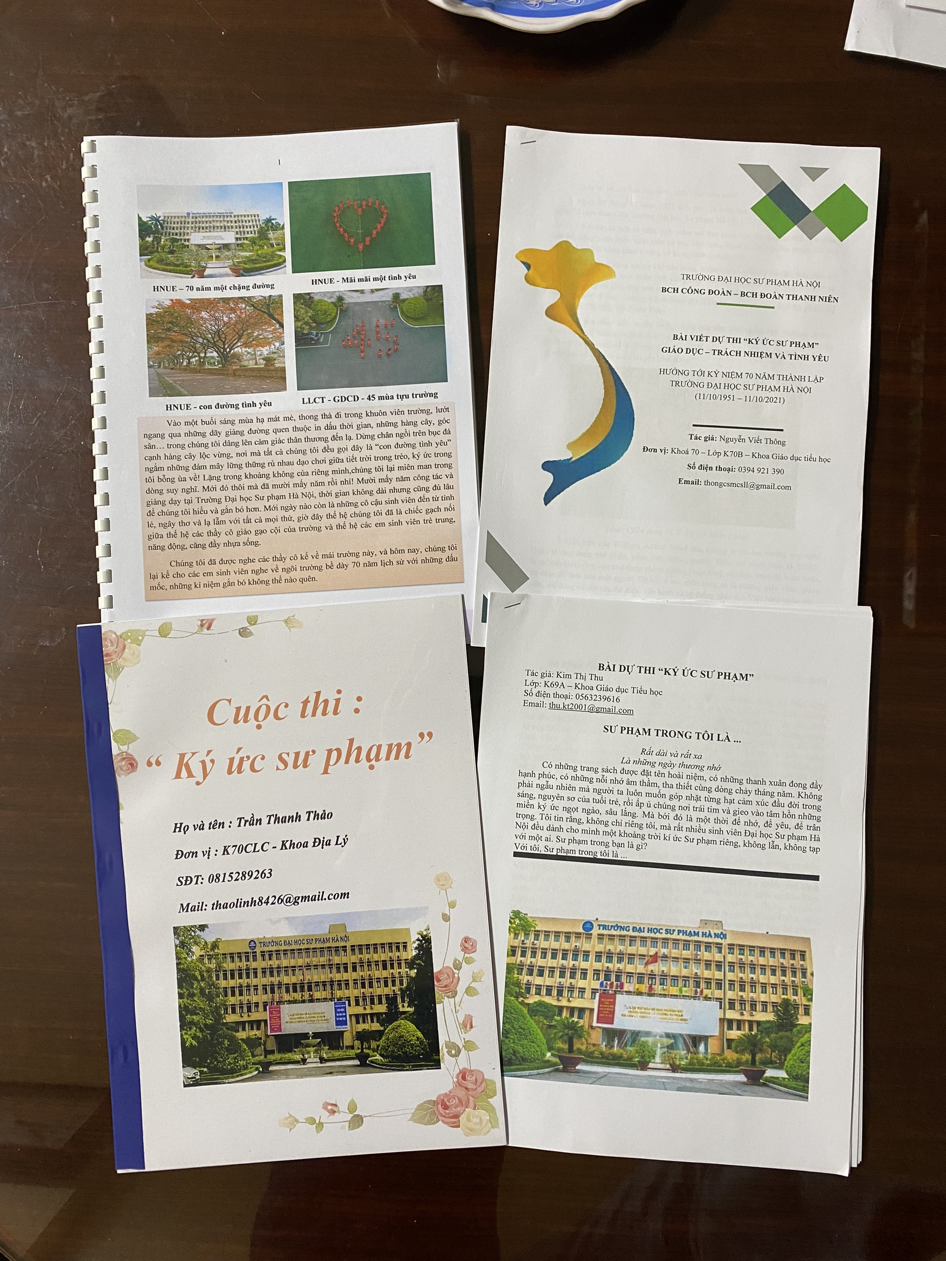 - Phần thi “Ký ức sư phạm”: viết về các sự kiện, cảm tưởng, kỷ niệm về thầy, cô giáo, bạn bè, về mái trường ĐHSP Hà Nội trong chặng đường 70 năm xây dựng và phát triển.