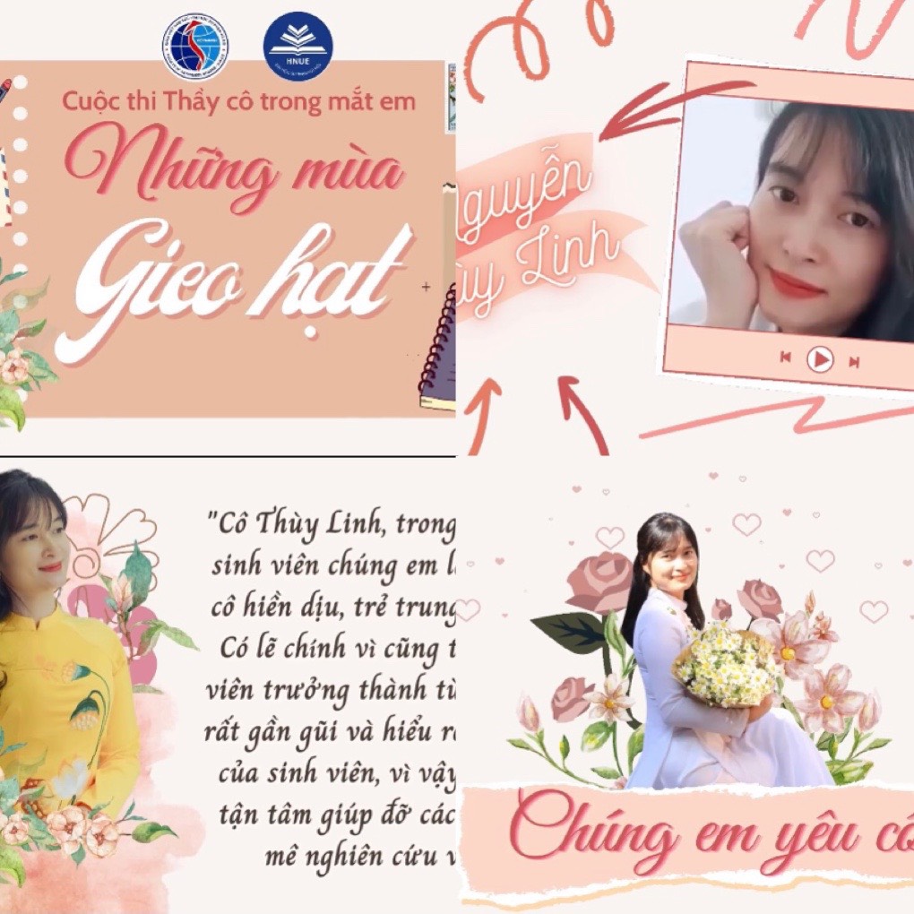 - Phần thi video clip “Thầy cô trong mắt em”: sáng tác video clip về hình ảnh thầy giáo, cô giáo trong con mắt của các thế hệ học sinh, sinh viên, thể hiện sự kính trọng, niềm tự hào về các thế hệ nhà giáo của Trường.