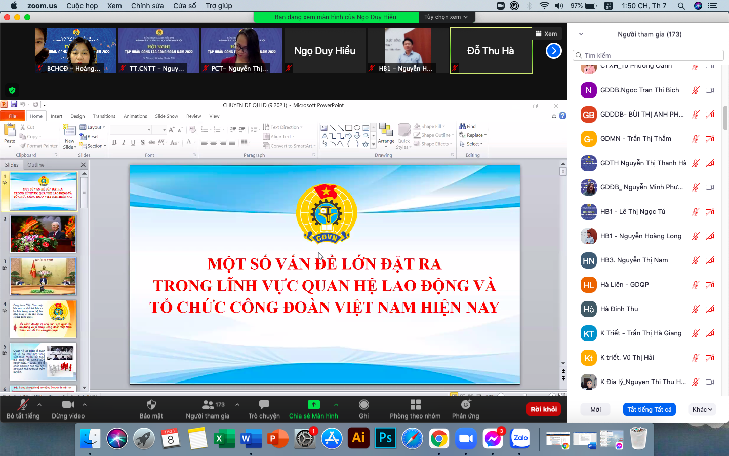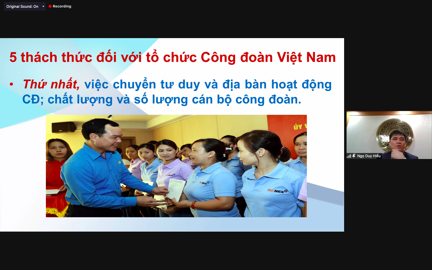 Đồng chí Ngọ Duy Hiểu - Phó Chủ tịch Tổng Liên đoàn Lao động Việt Nam đã trao đổi với các cán bộ công đoàn Trường Đại học Sư phạm Hà Nội về một trong những nội dung rất quan trọng và cần thiết cho công tác Công đoàn - đó là vấn đề quan hệ lao động với tổ chức công đoàn. Đồng chí Ngọ Duy Hiểu đã chỉ ra và phân tích các đặc điểm chủ yếu của quan hệ lao động của tổ chức Công đoàn Việt Nam; làm rõ những thách thức của tổ chức Công đoàn Việt Nam hiện nay như thách thức về chuyển tư duy, về địa bàn hoạt động, số lượng và chất lượng cán bộ công đoàn, sự phức tạp của việc quản lí các tổ chức nghiệp đoàn trong các đơn vị sử dụng lao động, sự hạn chế về trình độ, kỹ năng của người lao động… Đồng chí nhấn mạnh vào nhiệm vụ của cán bộ công đoàn, trong đó, nhiệm vụ đổi mới mạnh mẽ nội dung và phương thức hoạt động công đoàn theo hướng tập trung, hiện đại, phong phú, thiết thực; nhiệm vụ nâng cao chất lượng đội ngũ cán bộ công đoàn cơ sở về chuyên môn nghiệp vụ, kỹ năng công tác là các nhiệm vụ quan trọng nhằm ghi dấu ấn vai trò của tổ chức công đoàn trong đời sống của người lao động.