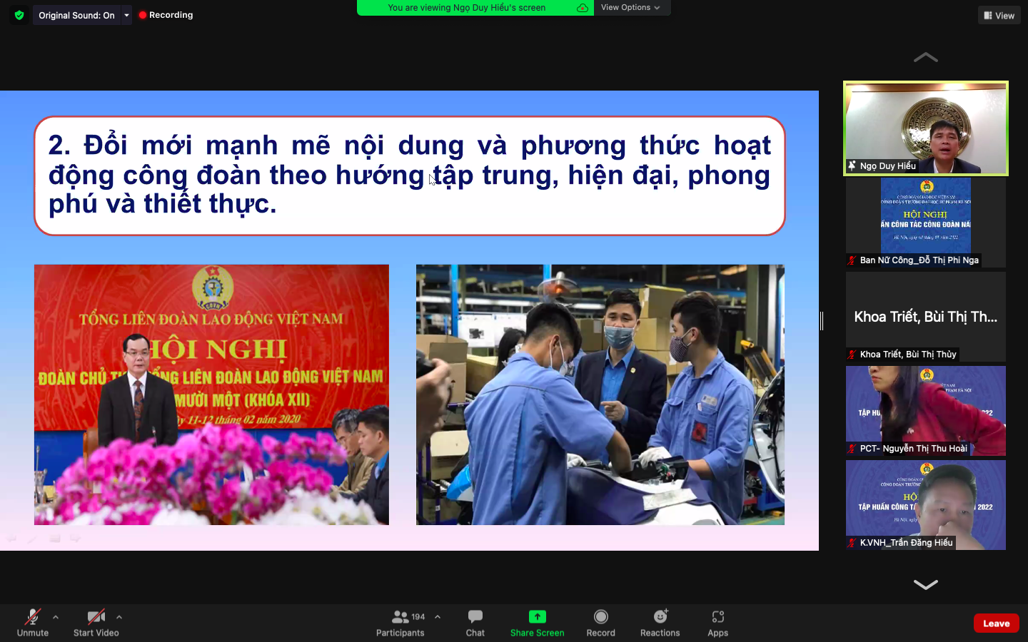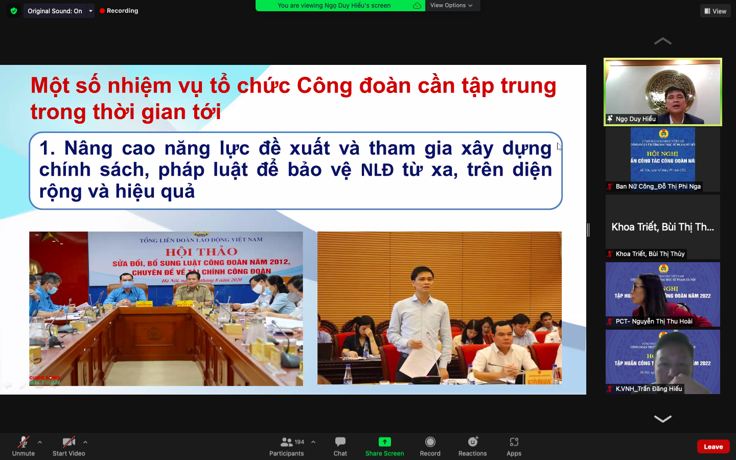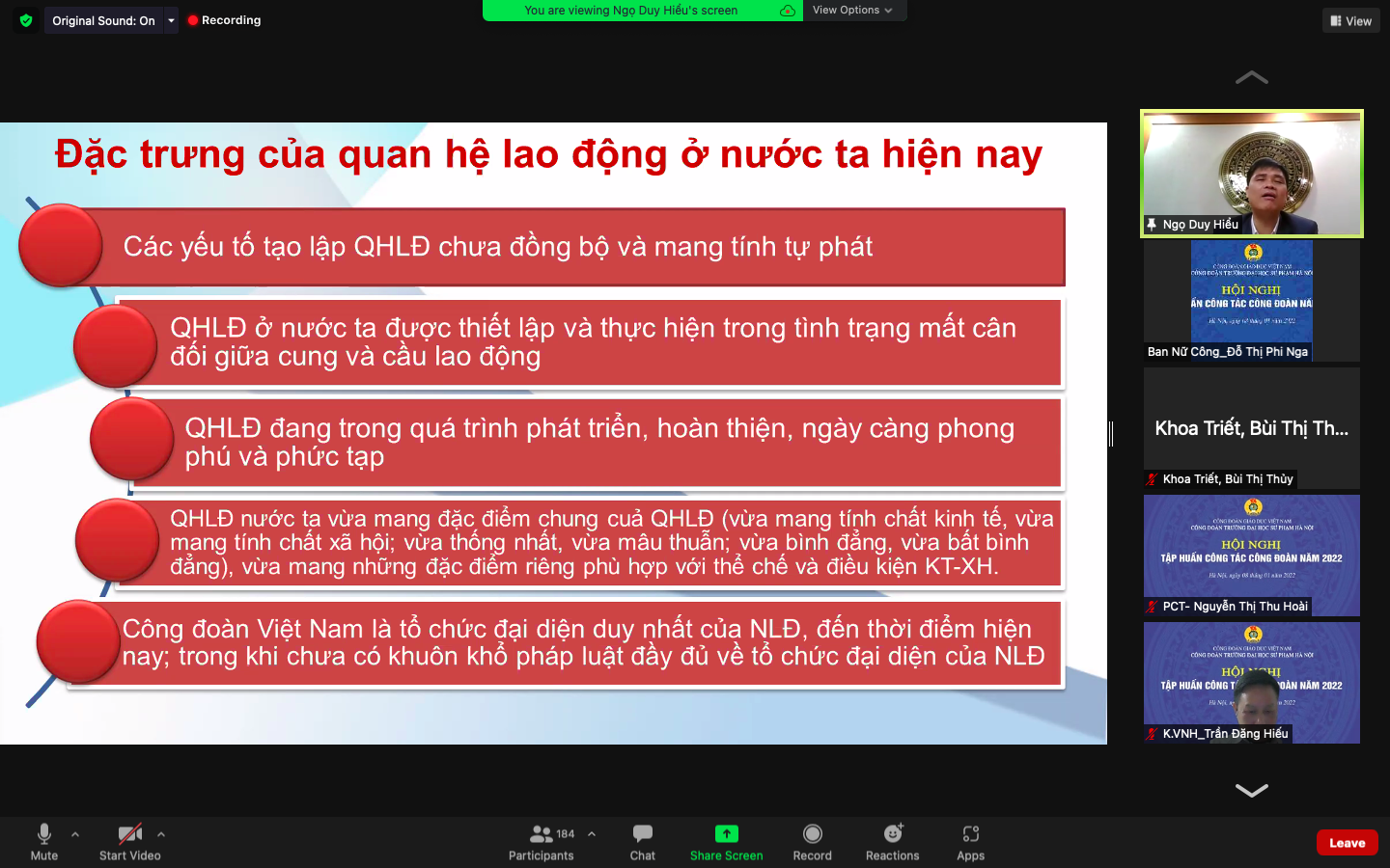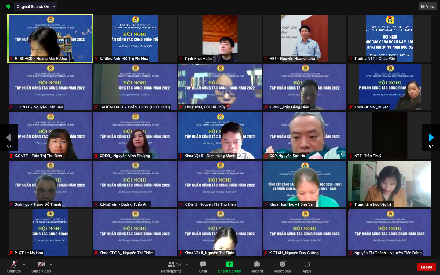 Thực hiện công tác Công đoàn năm 2022, được sự đồng ý của Đảng uỷ Trường, chiều ngày 08 tháng 01 năm 2022, Ban Chấp hành Công đoàn Trường Đại học Sư phạm Hà Nội đã tổ chức Hội nghị tập huấn công tác công đoàn trên nền tảng zoom với sự tham gia của gần 200 đại biểu.