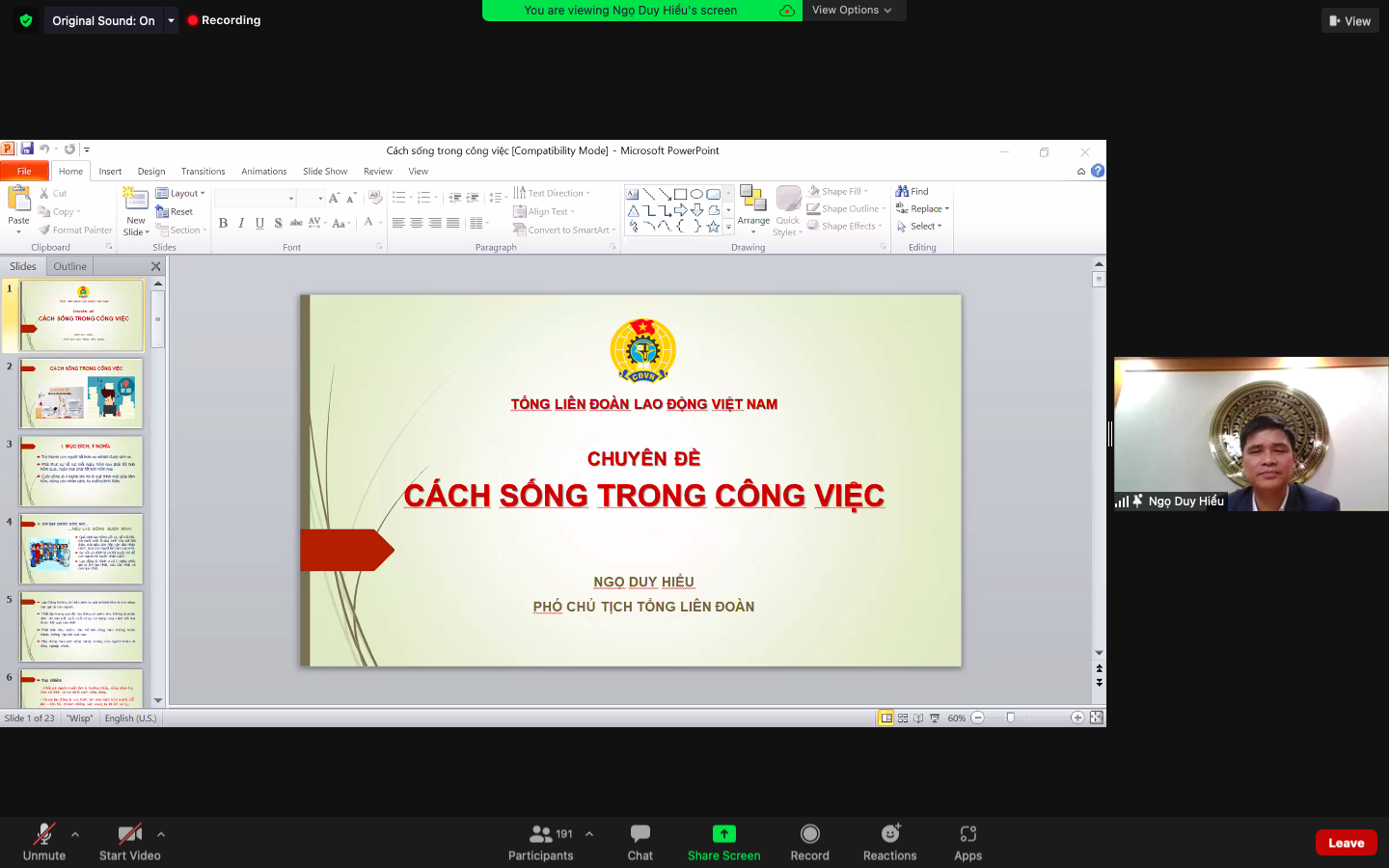 Đ/c Ngọ Duy Hiểu - Phó Chủ tịch Tổng Liên đoàn Lao động Việt Nam tại Hôi nghị trực tuyến